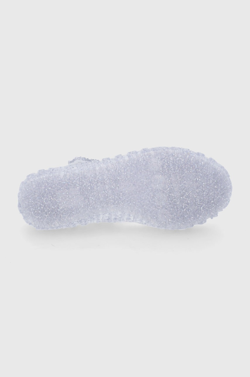 - Produkt odpowiedni dla wegan.buty wykonane są z aromatyzowanego, unikalnego tworzywa Mel-flex - mieszanki plastiku i kauczuku o charakterystycznym zapachu gumy balonowej.