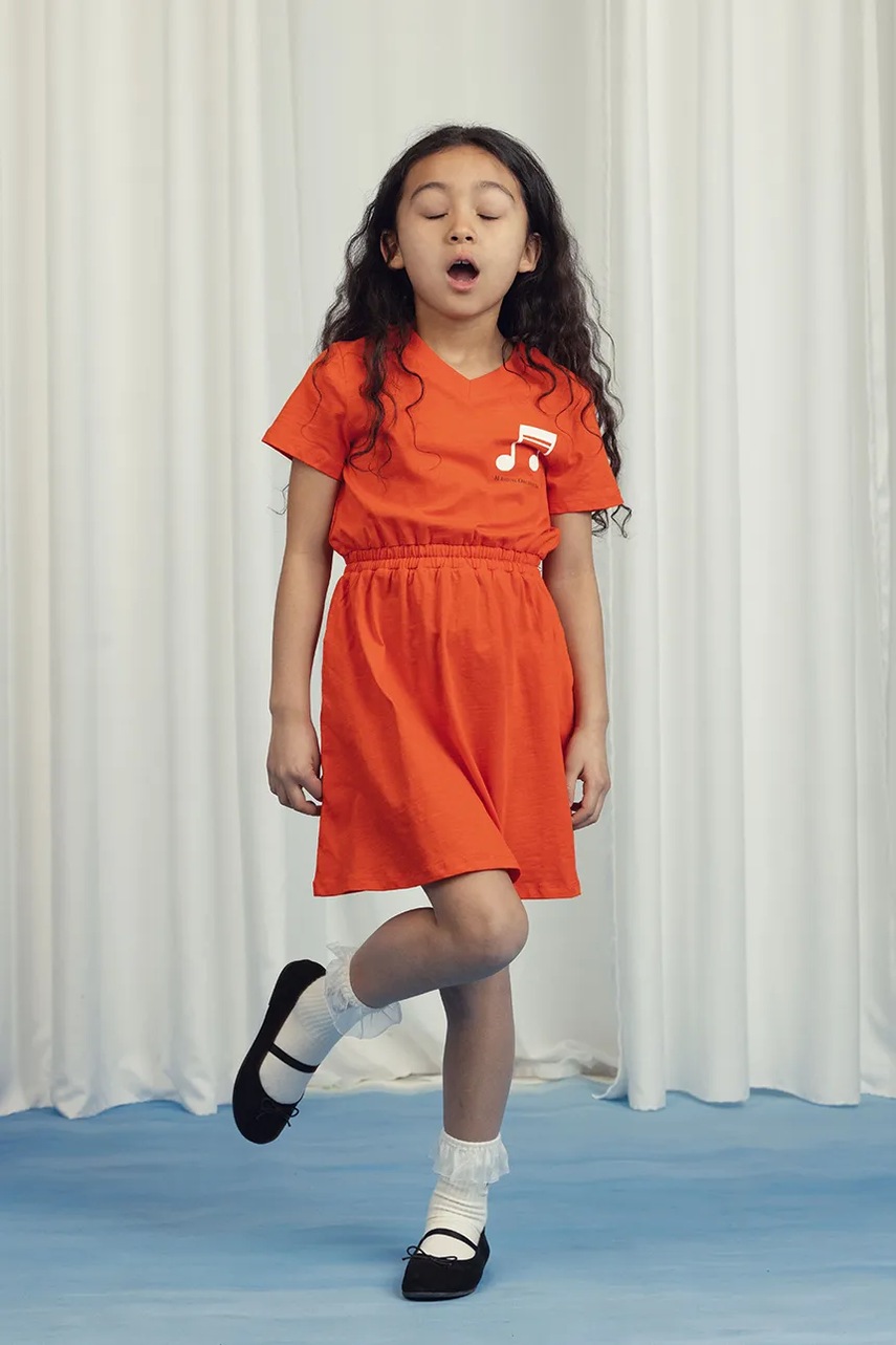 Mini Rodini sukienka bawełniana dziecięca Note kolor pomarańczowy midi rozkloszowana 2525012142