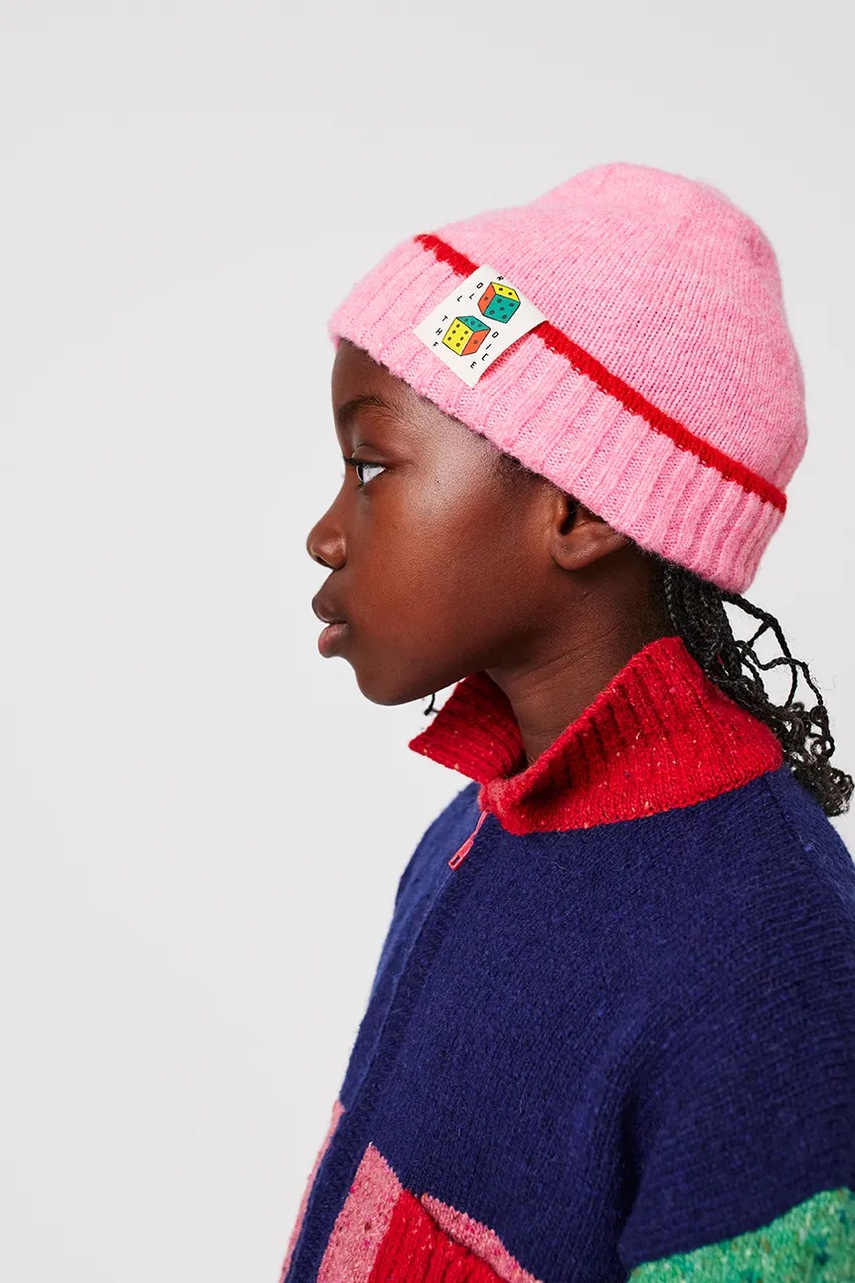 Bobo Choses czapka z domieszką wełny dziecięca Roll The Dice kolor różowy 225AI035