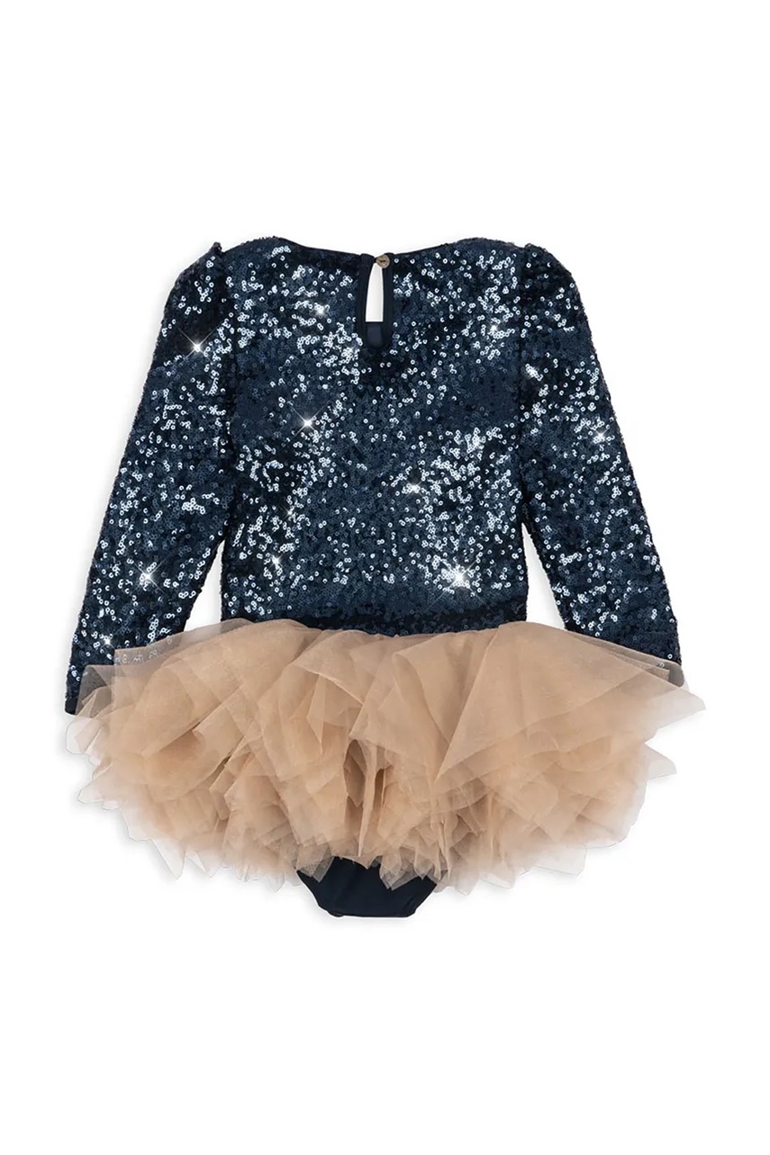 Konges Slojd sukienka dziecięca BALLERINA GLITTER DRESS kolor granatowy mini dopasowana KS104208