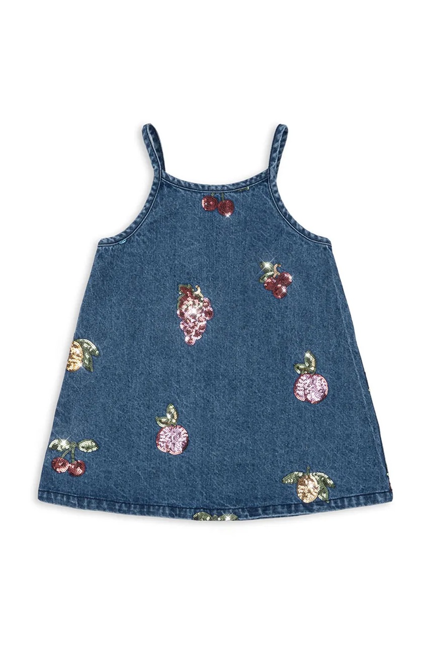 Konges Slojd sukienka bawełniana dziecięca MAGOT SEQUIN STRAP DRESS GOTS kolor niebieski mini rozkloszowana KS104366