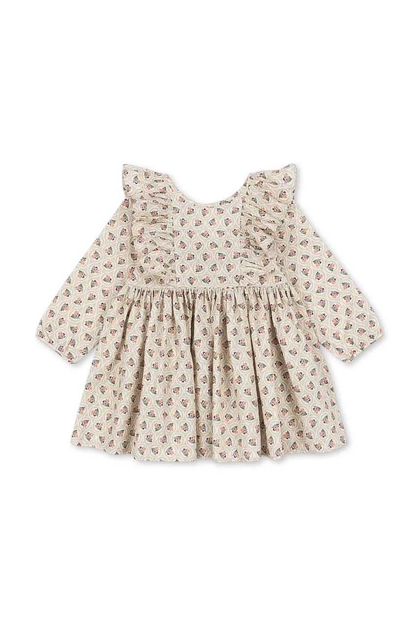 Konges Slojd sukienka bawełniana dziecięca CIANNA LS BOW DRESS GOTS kolor beżowy mini rozkloszowana KS104262