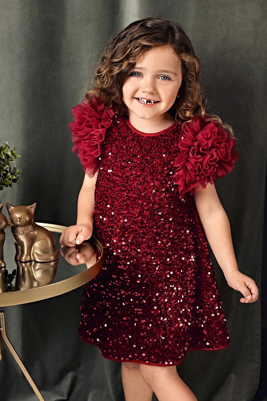 Abel&Lula sukienka dziecięca kolor czerwony mini prosta 5529