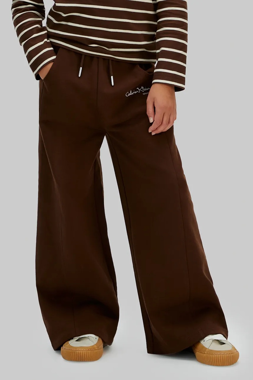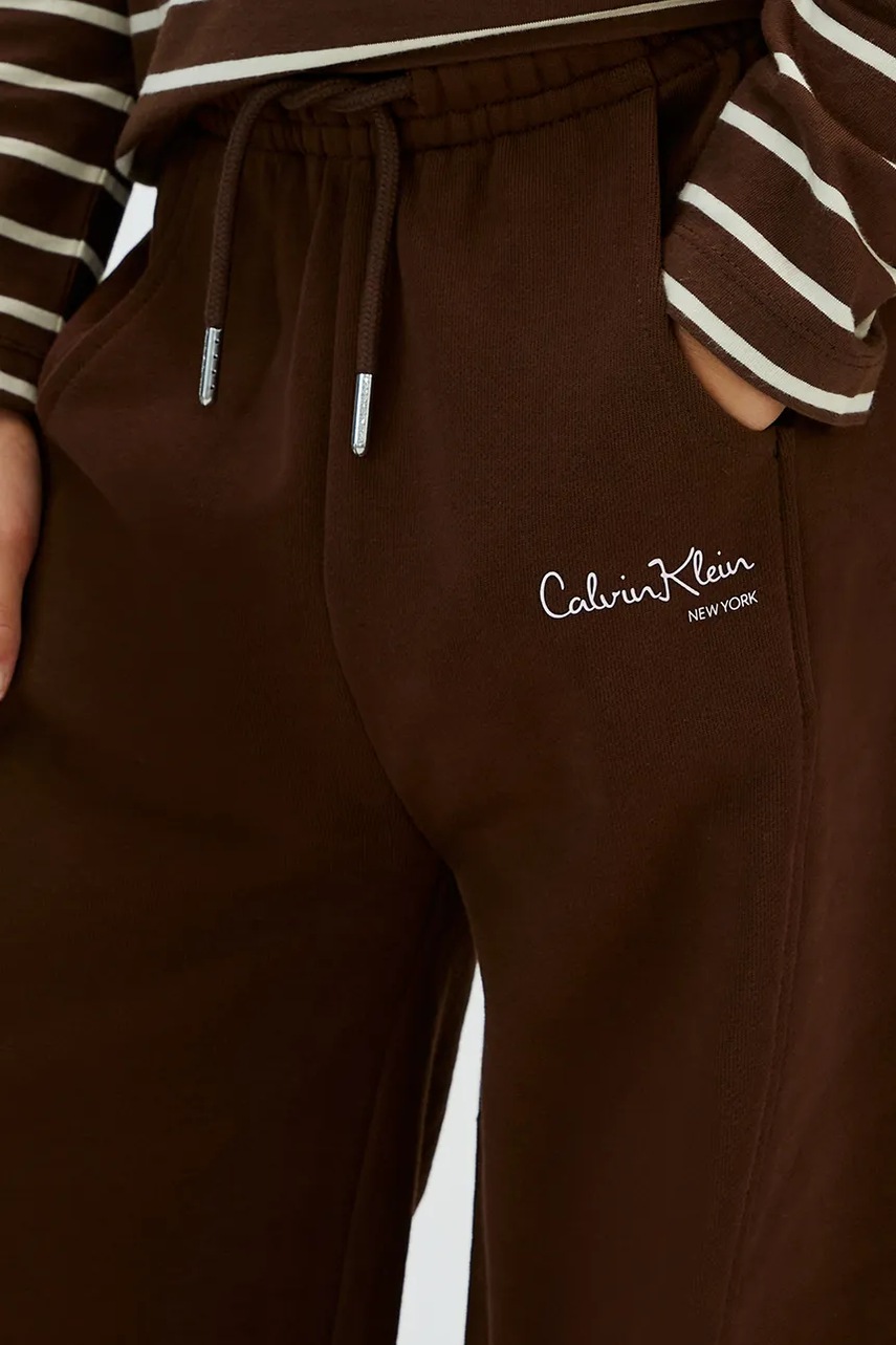 Calvin Klein Jeans spodnie dresowe bawełniane dziecięce kolor brązowy z aplikacją IG0IG03095