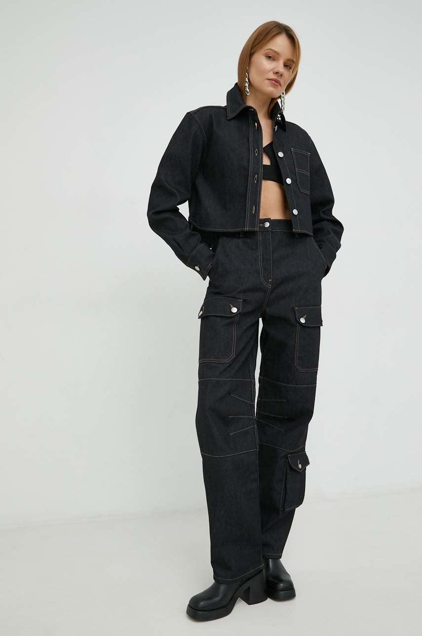Remain koszula jeansowa damska kolor czarny relaxed z kołnierzykiem klasycznym