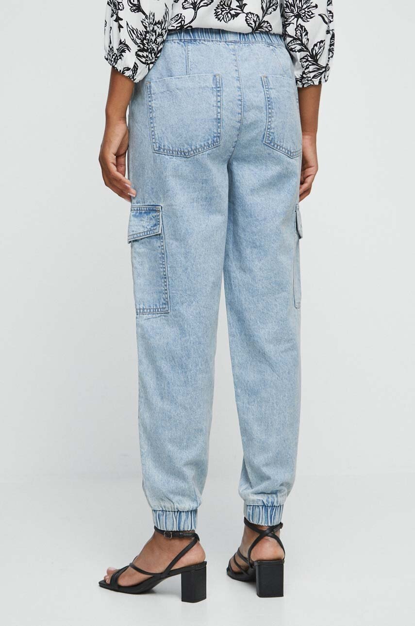 - Fason jogger - jeansy charakteryzują się nogawką zakończoną ściągaczem, a luźniejsza forma nadaje im nieco streetwearowy charakter. Krój został zaczerpnięty ze spodni dresowych - są uniwersalne i komfortowe w użytkowaniu, odpowiednie dla każdej figury.