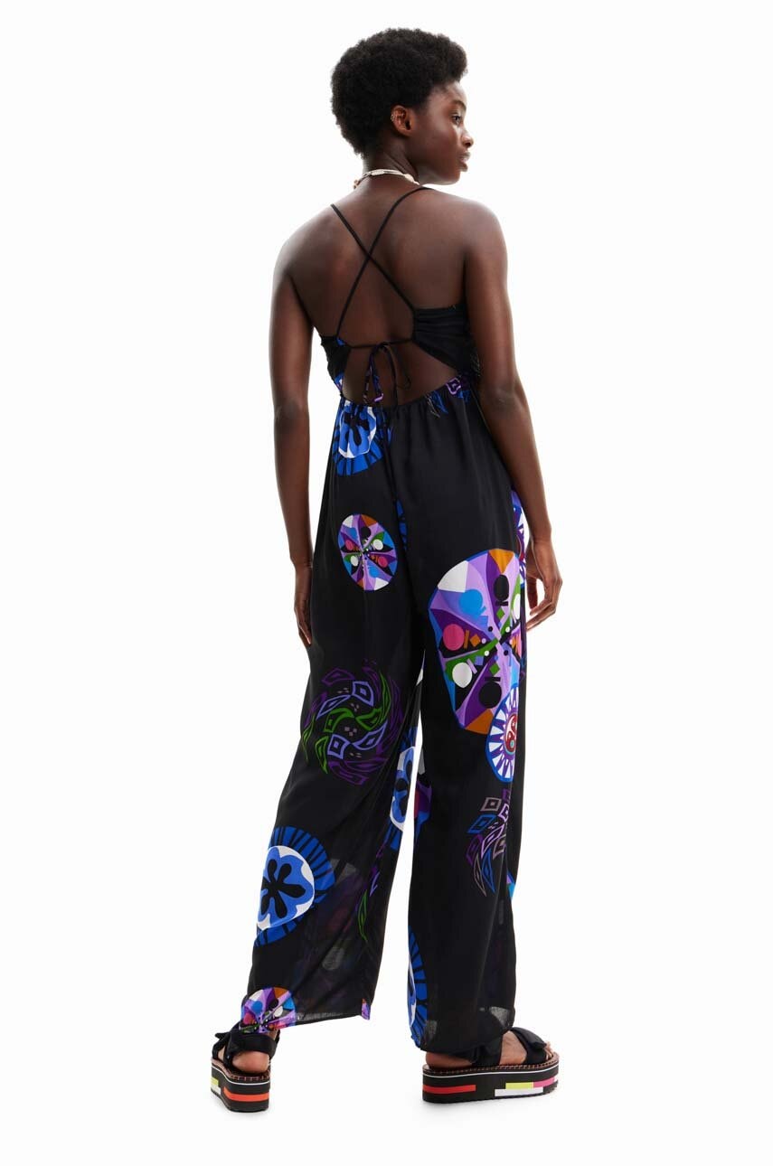 Desigual sukienka kolor czarny z dekoltem karo