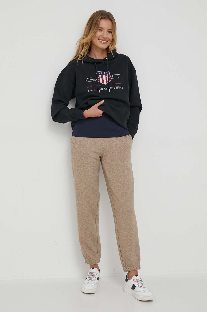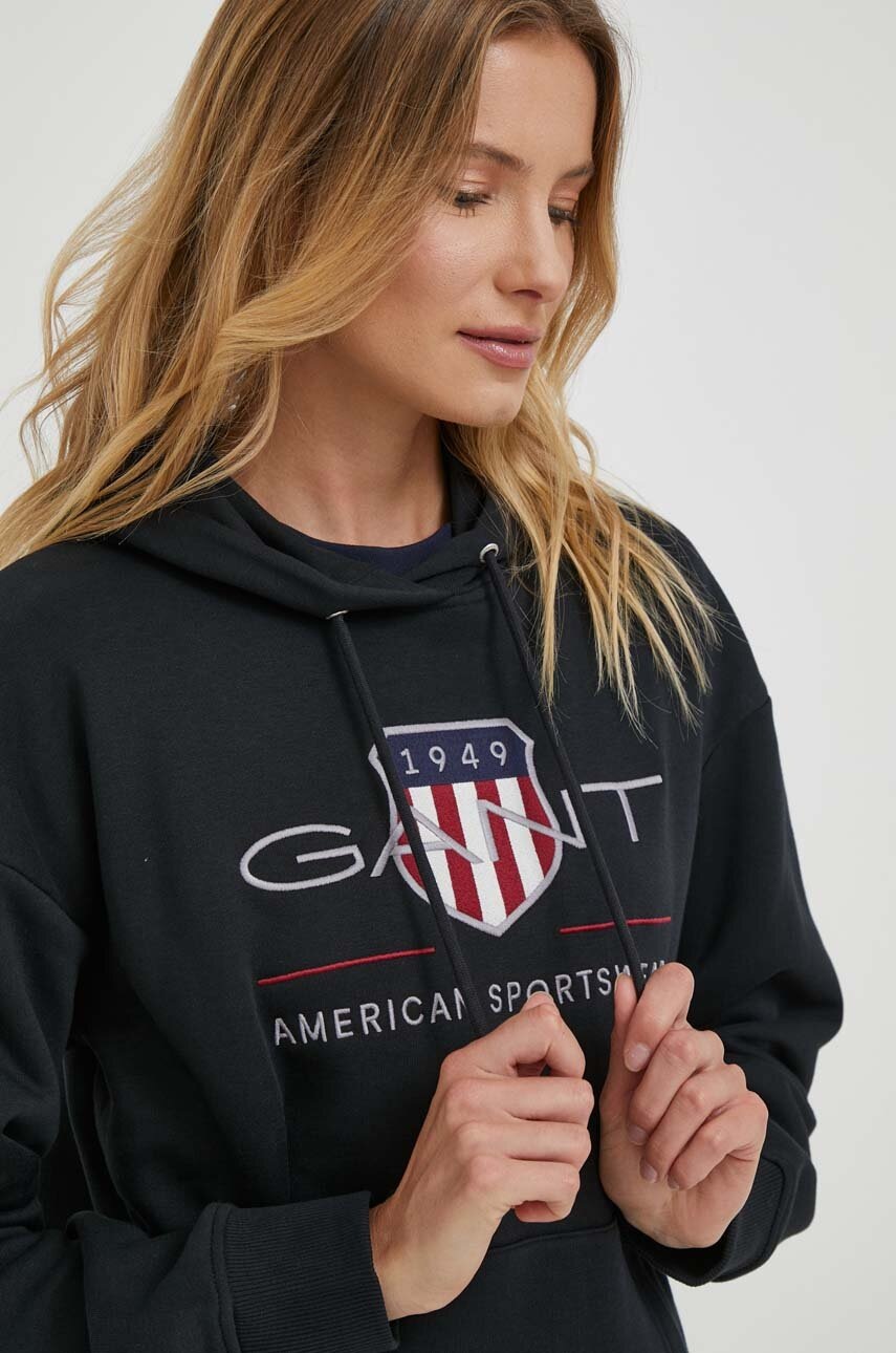 Gant bluza damska kolor czarny z kapturem z aplikacją