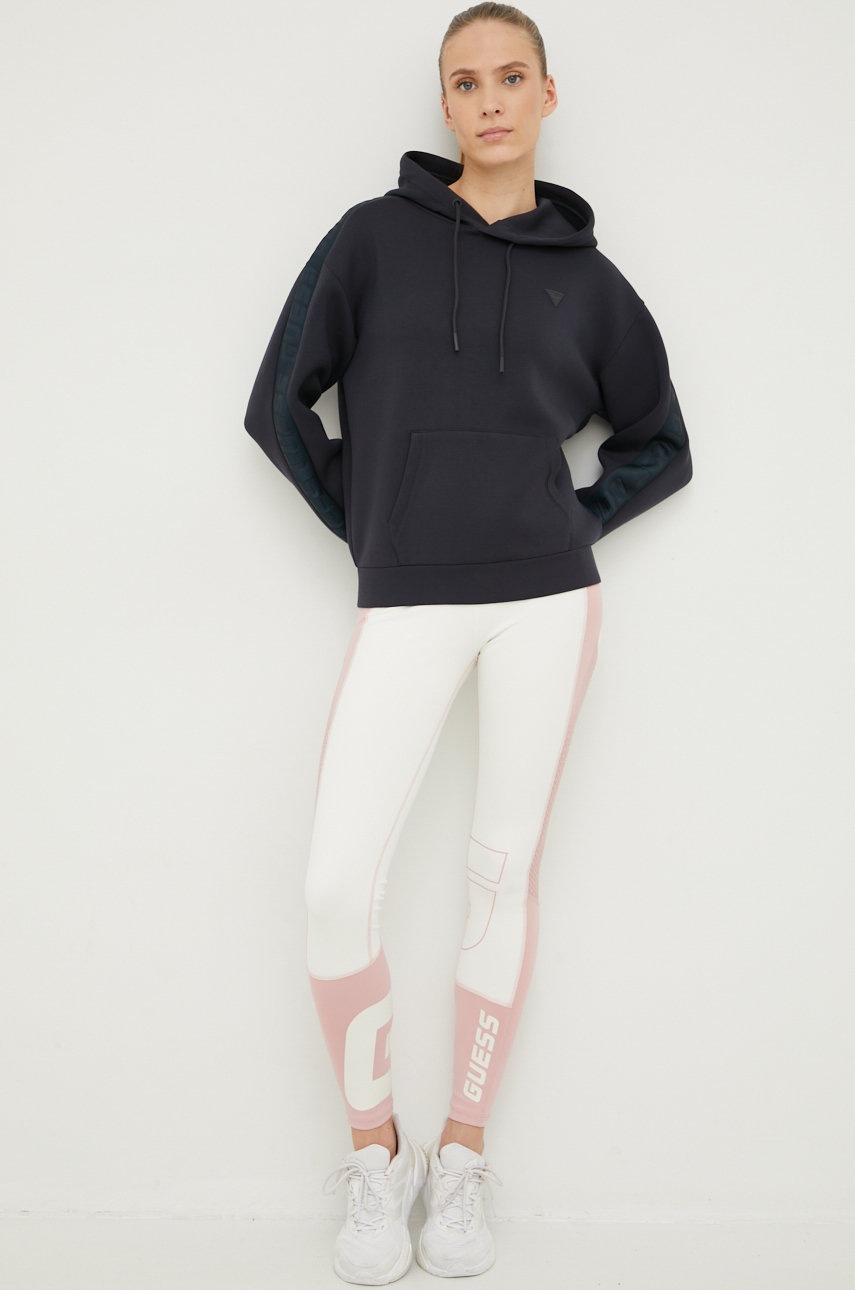 Guess bluza damska kolor granatowy z kapturem z aplikacją