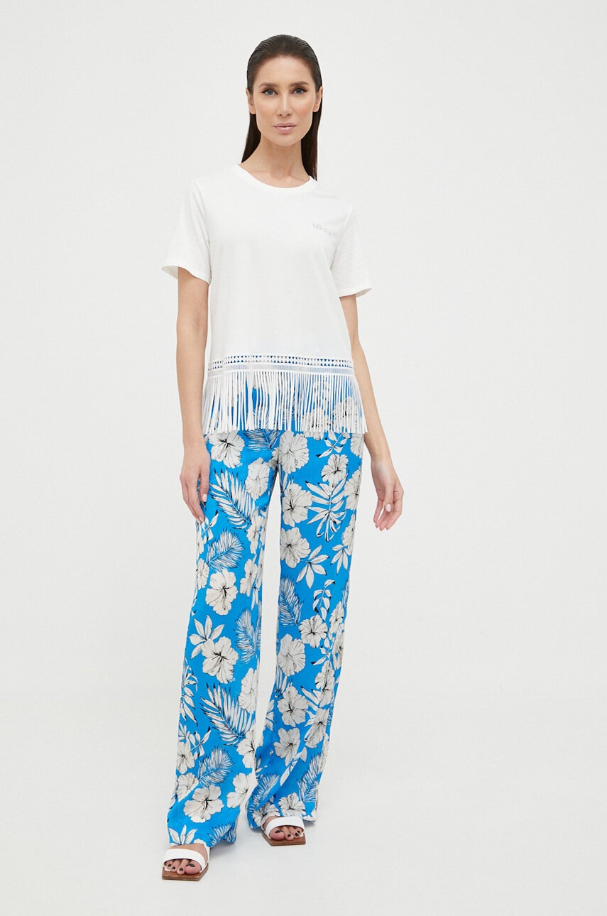 Pinko spodnie damskie kolor niebieski szerokie high waist