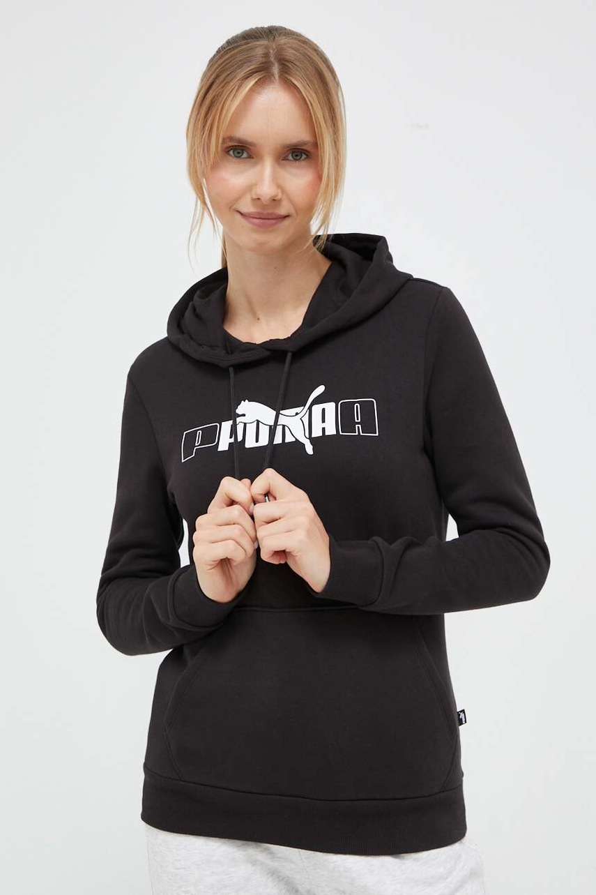 Puma bluza damska kolor czarny z kapturem z nadrukiem