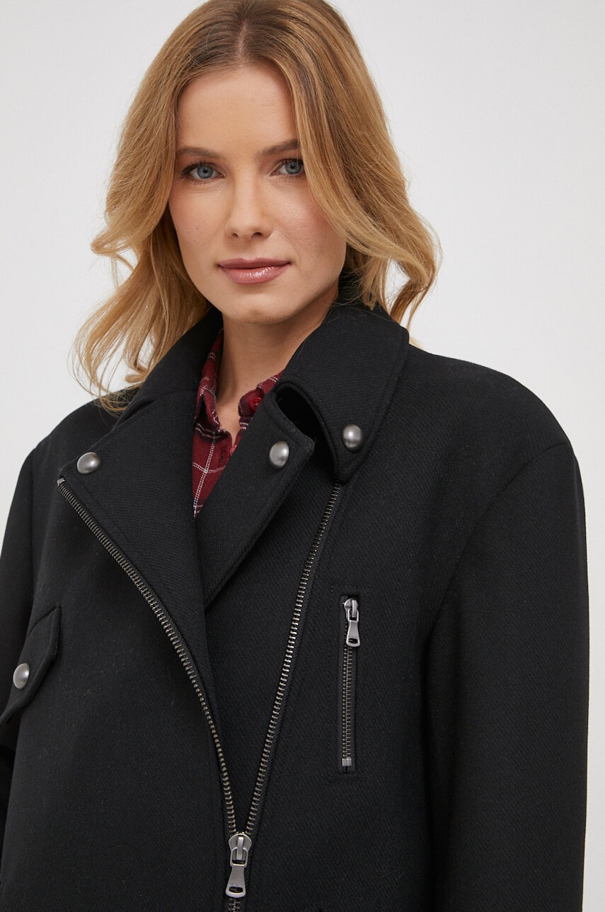 Sisley płaszcz z domieszką wełny kolor czarny przejściowy oversize