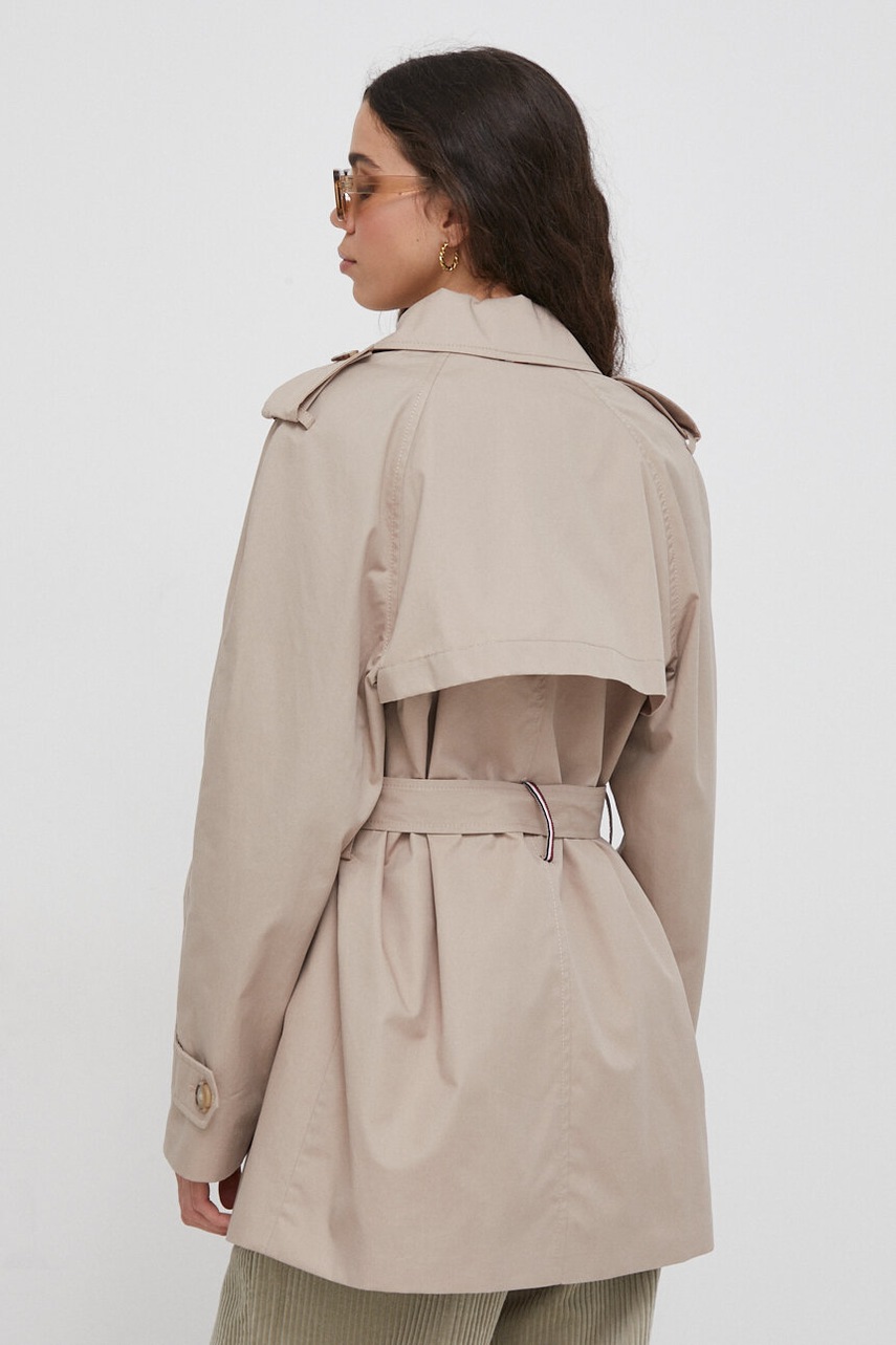 Tommy Hilfiger trencz bawełniany kolor beżowy przejściowy oversize