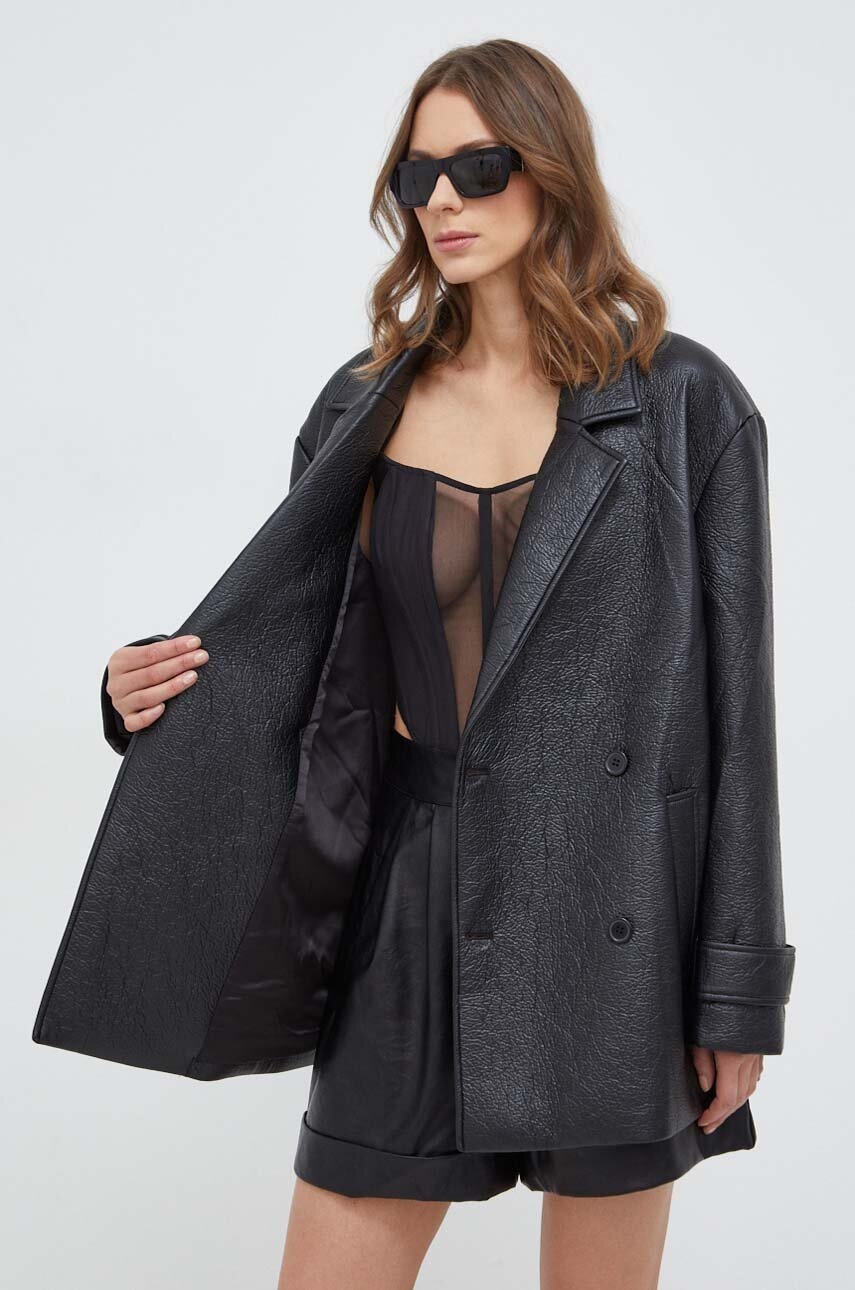Bardot płaszcz damski kolor czarny przejściowy oversize