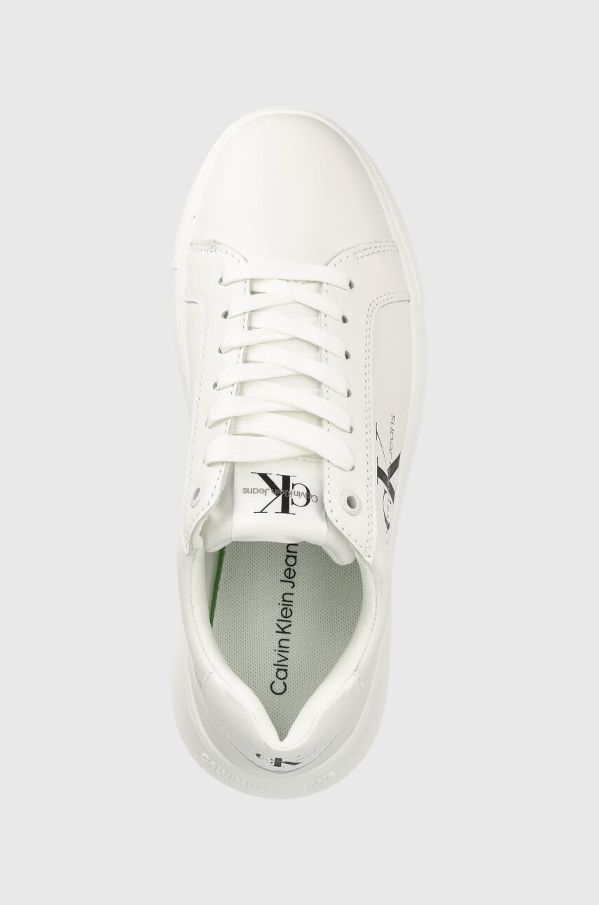 Calvin Klein Jeans sneakersy skórzane YW0YW00823 CHUNKY CUPSOLE MONOLOGO W kolor biały
