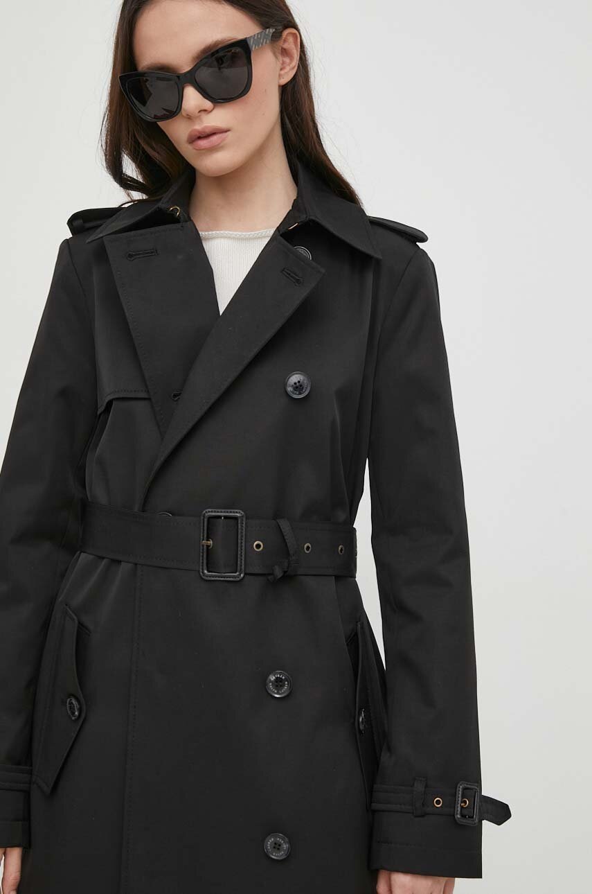 Lauren Ralph Lauren płaszcz damski kolor czarny przejściowy dwurzędowy