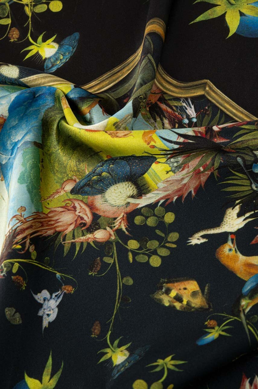 Eviva L?arte 2024 ? nowa odsłona kolekcji poświęcona malarstwu to hołd dla epoki renesansu i mistrzów jej sztuki. Na?ubraniach i akcesoriach umieszczono interpretacje arcydzieł twórców takich jak: Dürer, Bruegel, Da Vinci czy Bosch oraz przedstawienia renesansowych scen i historii stworzone przez późniejszych artystów. Kolekcja, w której znalazły się m.in. T-shirty, koszule, bluzy, kurtki, spódnice, sukienki i dodatki wprowadza do codzienności esencję złotego wieku sztuki - każdy model odzwierciedla charakter renesansowej inspiracji, łącząc w sobie historię, kunszt oraz współczesny styl. To opowieść o dziedzictwie twórczości malarskiej, która zaprasza do swojego świata każdego, kto szuka sposobu na wyrażanie siebie.Wykorzystane dzieło: wybrane prace - kolaż, Hieronymus Bosch.