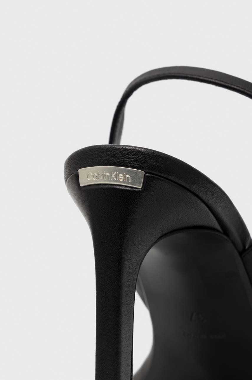 Calvin Klein sandały skórzane HEEL SANDAL 90 LTH kolor czarny HW0HW01945