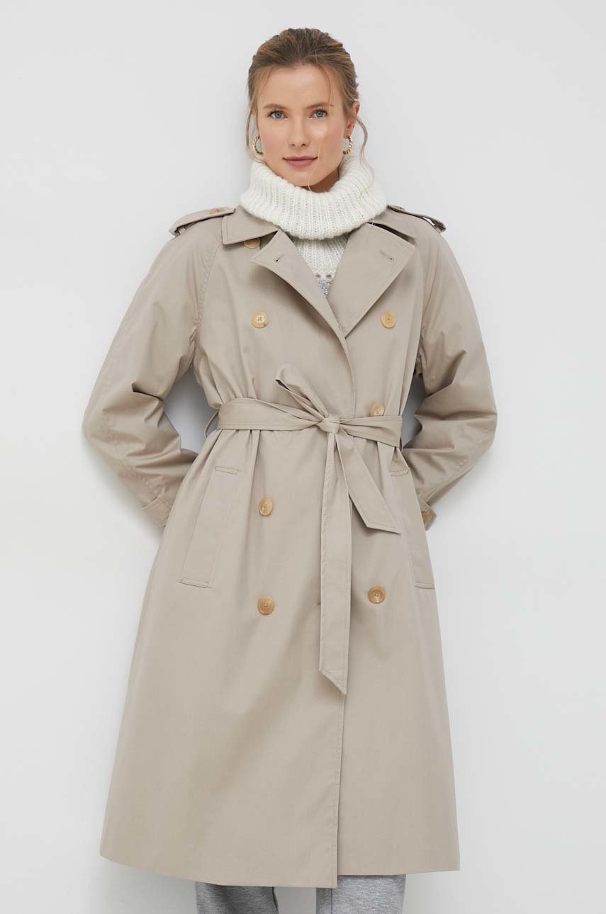 Tommy Hilfiger trencz bawełniany kolor beżowy przejściowy