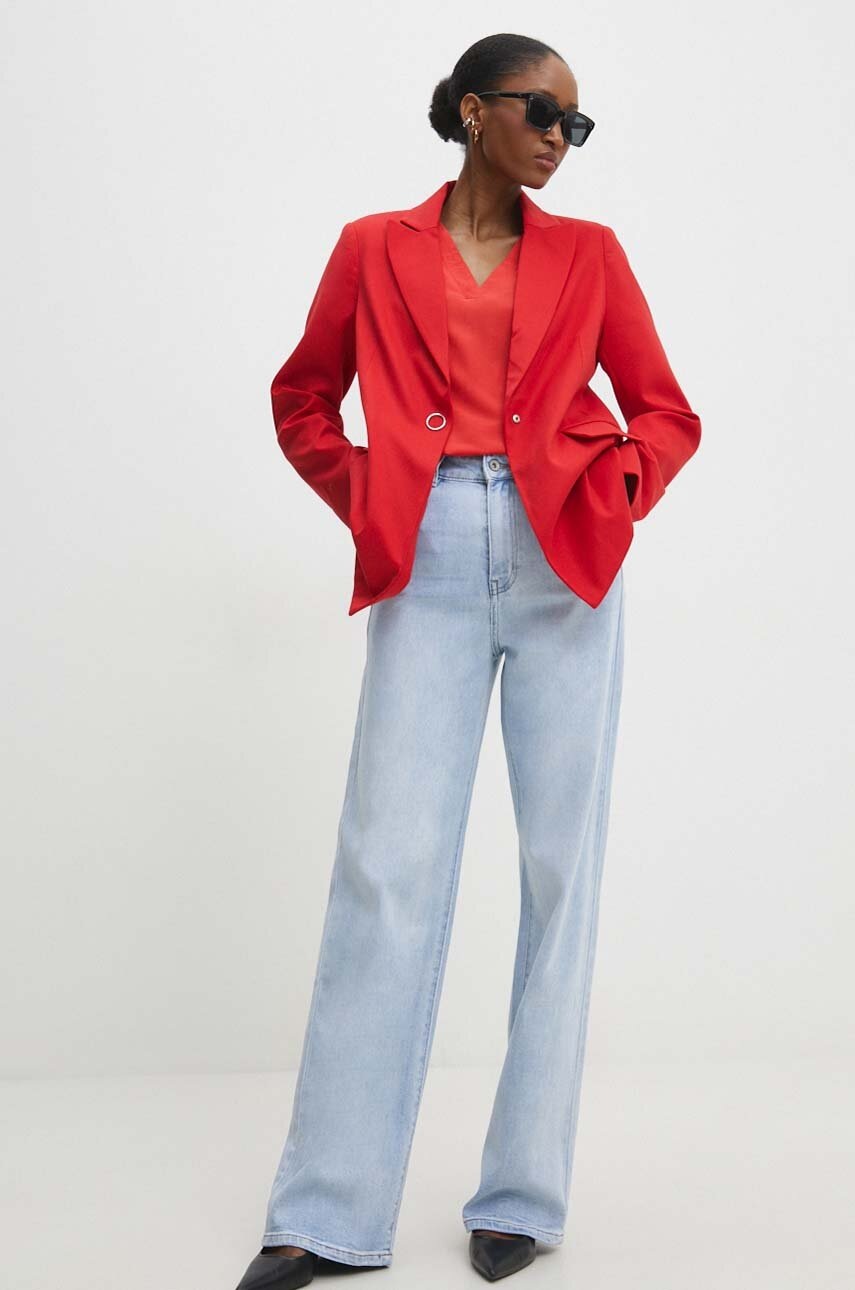 - Model z podwyższoną talią i zapięciem na guzik i suwak.