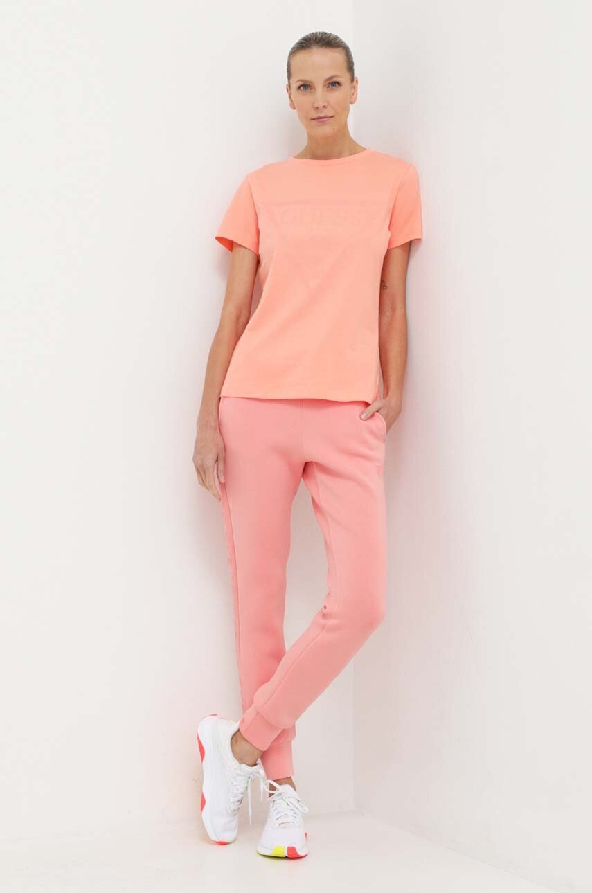 Guess spodnie dresowe kolor pomarańczowy z nadrukiem