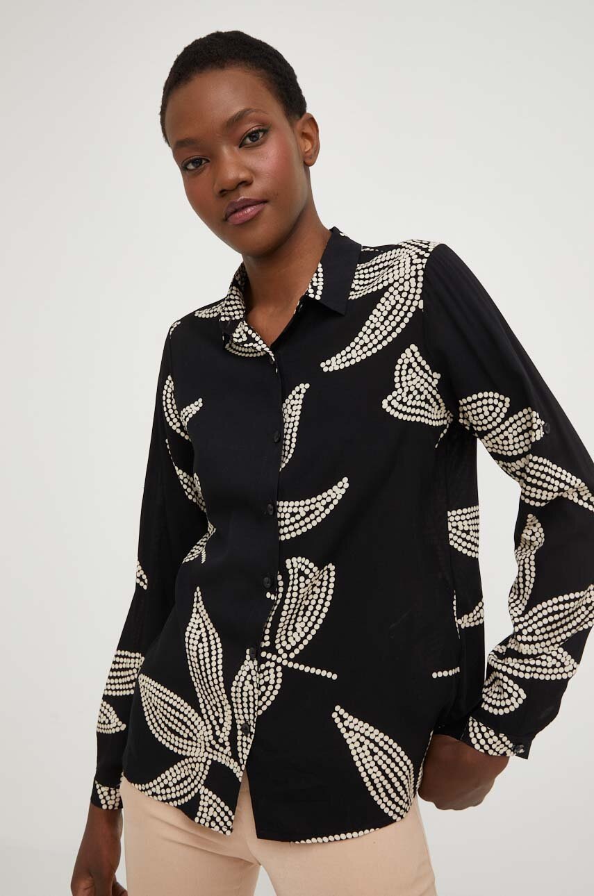 Answear Lab koszula damska kolor czarny relaxed z kołnierzykiem klasycznym