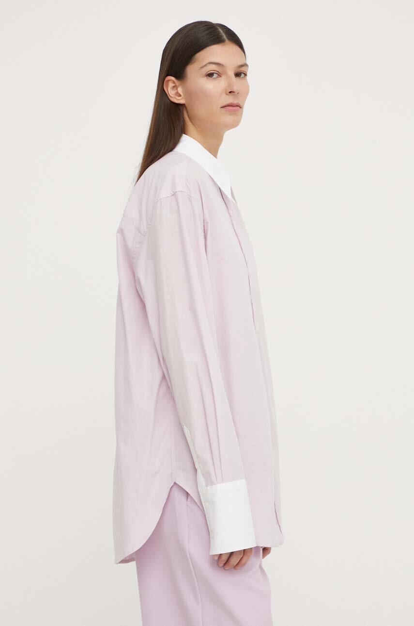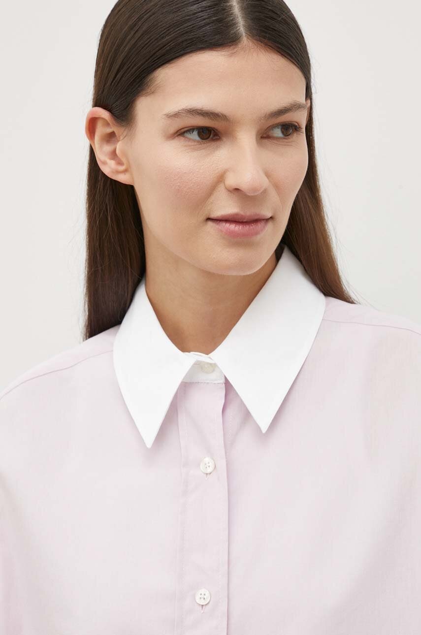 Samsoe Samsoe koszula bawełniana SALOVAS damska kolor różowy relaxed z kołnierzykiem klasycznym F24100170