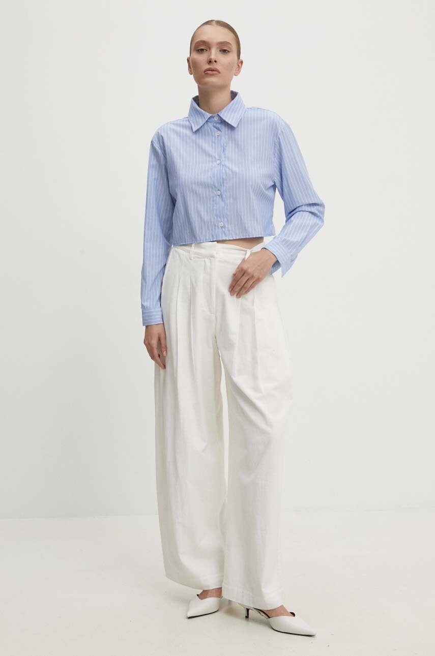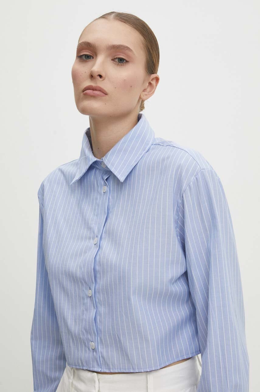 Answear Lab koszula bawełniana damska kolor niebieski relaxed z kołnierzykiem klasycznym