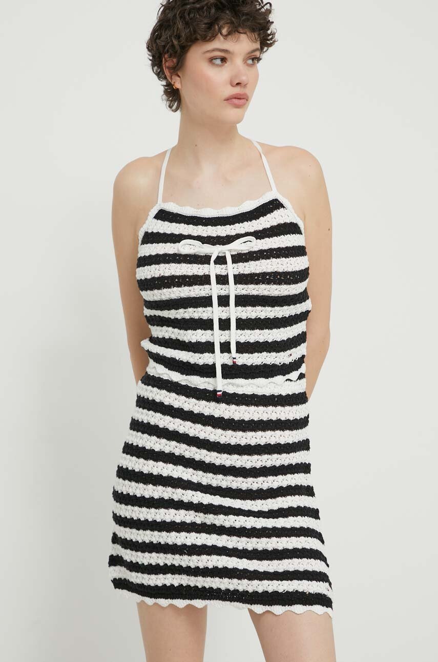 Tommy Jeans top bawełniany kolor czarny wzorzysta DW0DW17757