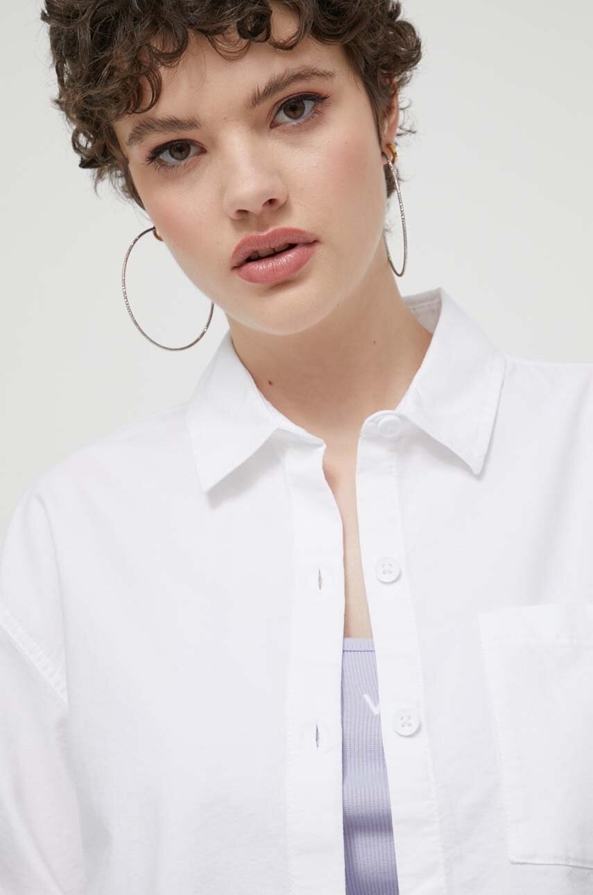 Vans koszula bawełniana damska kolor biały relaxed z kołnierzykiem klasycznym