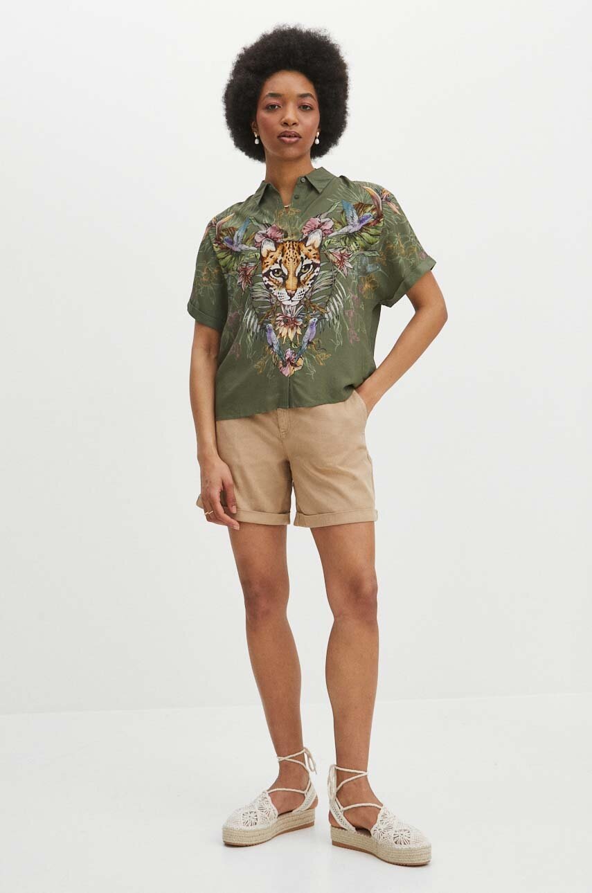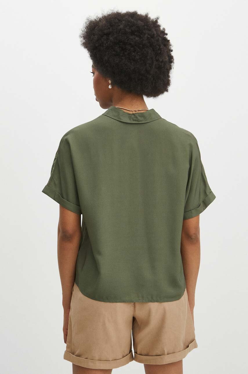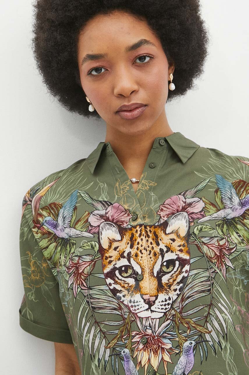 Medicine koszula damska kolor zielony regular z kołnierzykiem klasycznym