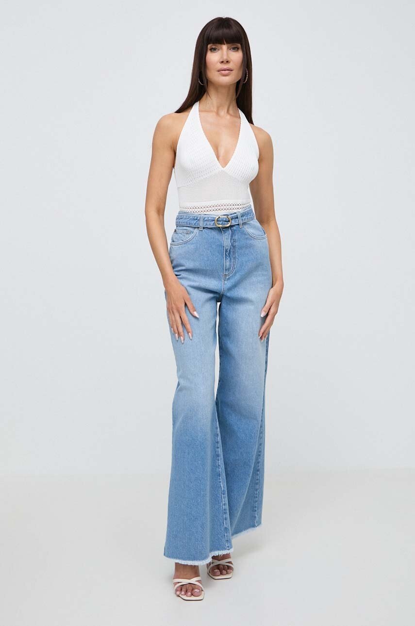 - Fason wide leg - jeansy lekko dopasowane w okolicy bioder z charakterystyczną szeroką nogawką, która stopniowo poszerza się od talii, aż do samego dołu. Krój akcentuje wcięcie w talii, a luźny dół nie krępuje ruchów.