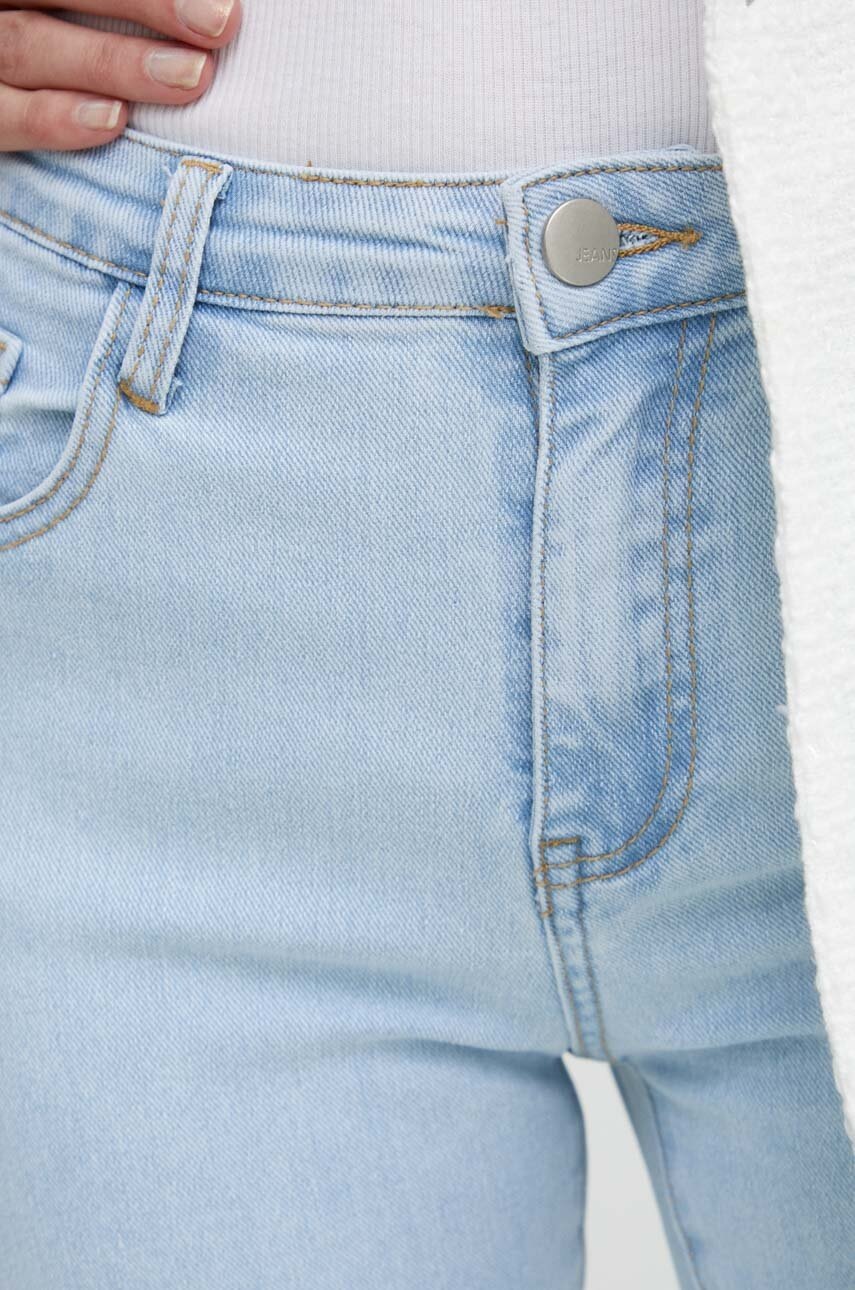 - Model z regularną talią i zapięciem na guzik i suwak.