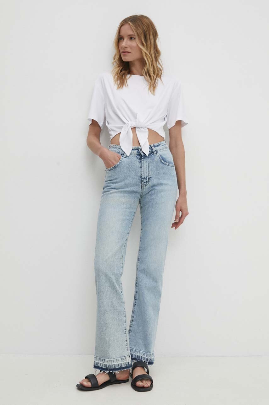 - Model z podwyższoną talią i zapięciem na guzik i suwak.