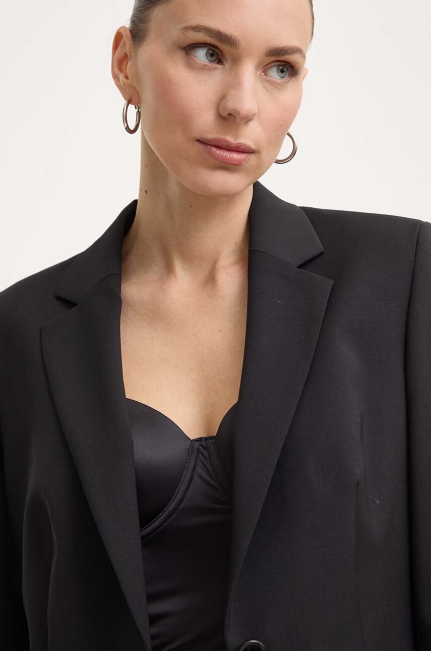 BOSS marynarka wełniana kolor czarny jednorzędowa gładka 50490020