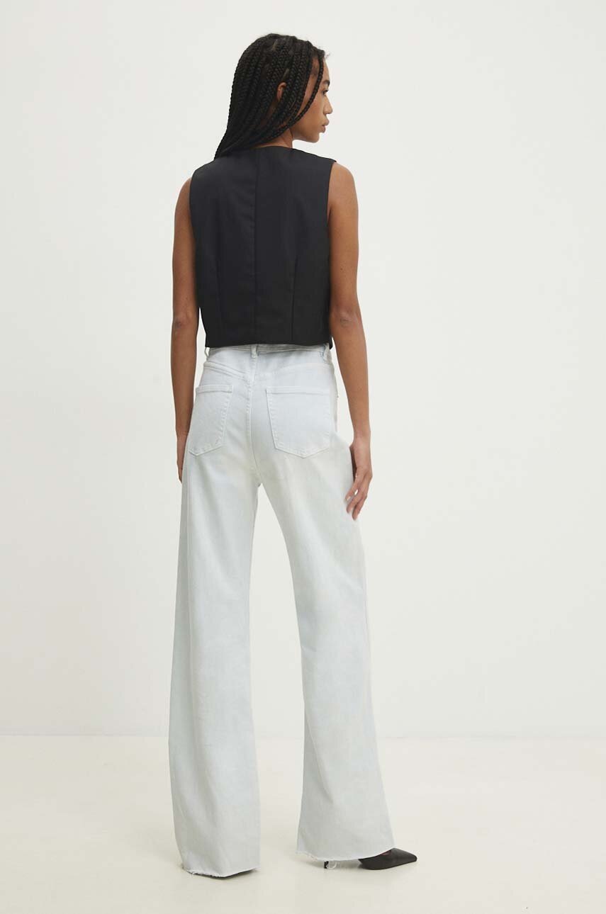 - Model z podwyższoną talią i zapięciem na guzik i suwak.