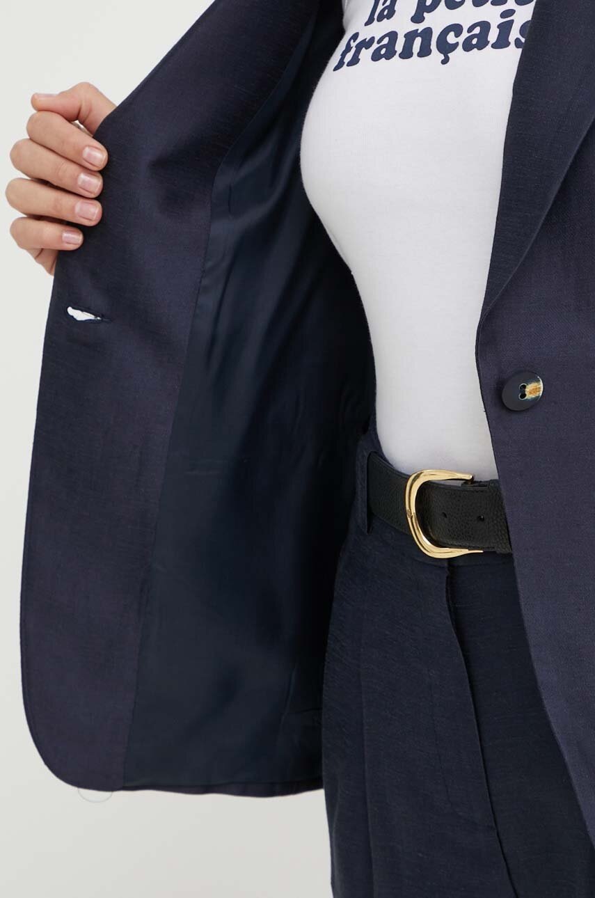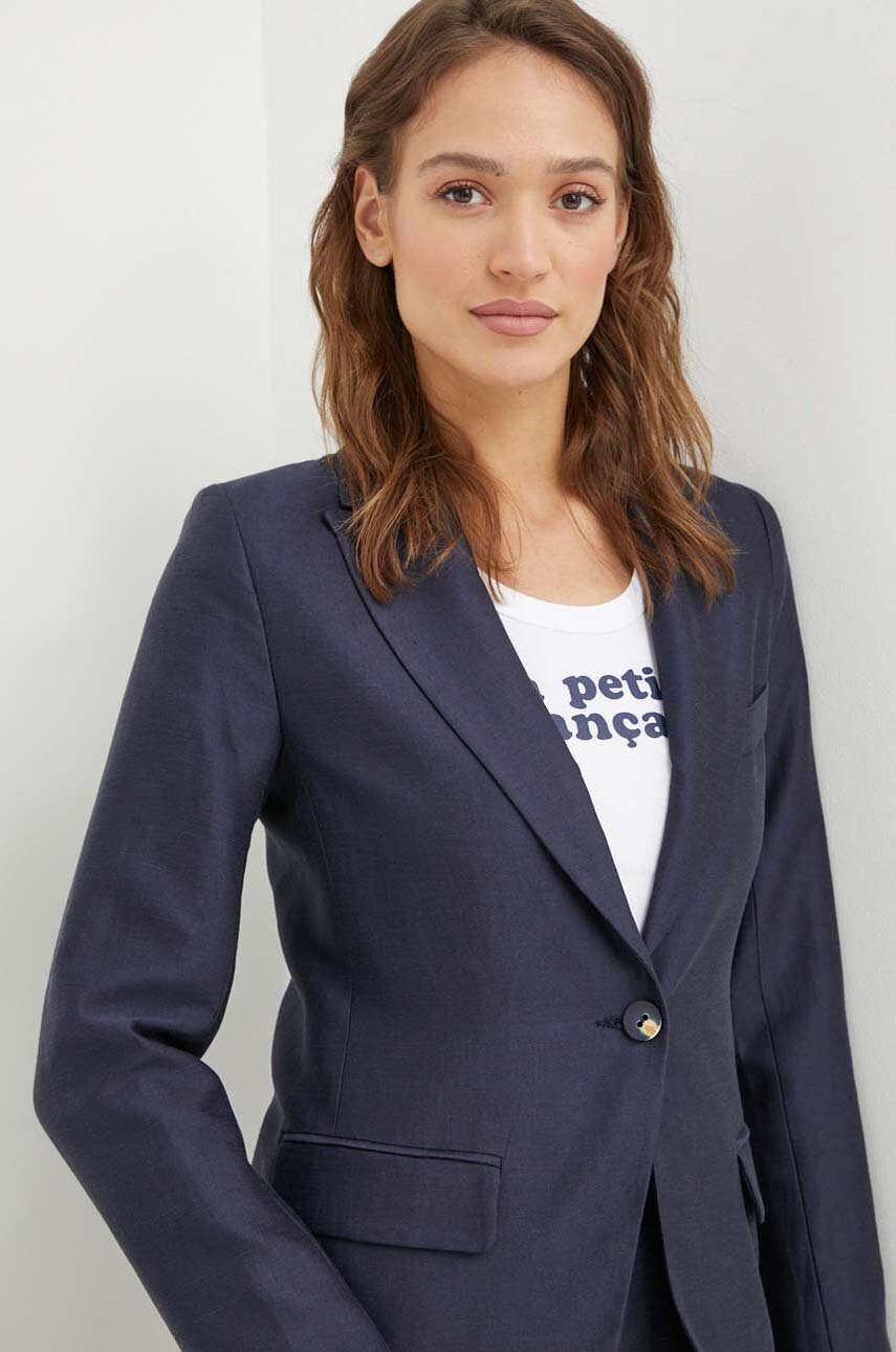 La Petite Française marynarka z domieszką lnu VOYANTE kolor granatowy jednorzędowa gładka