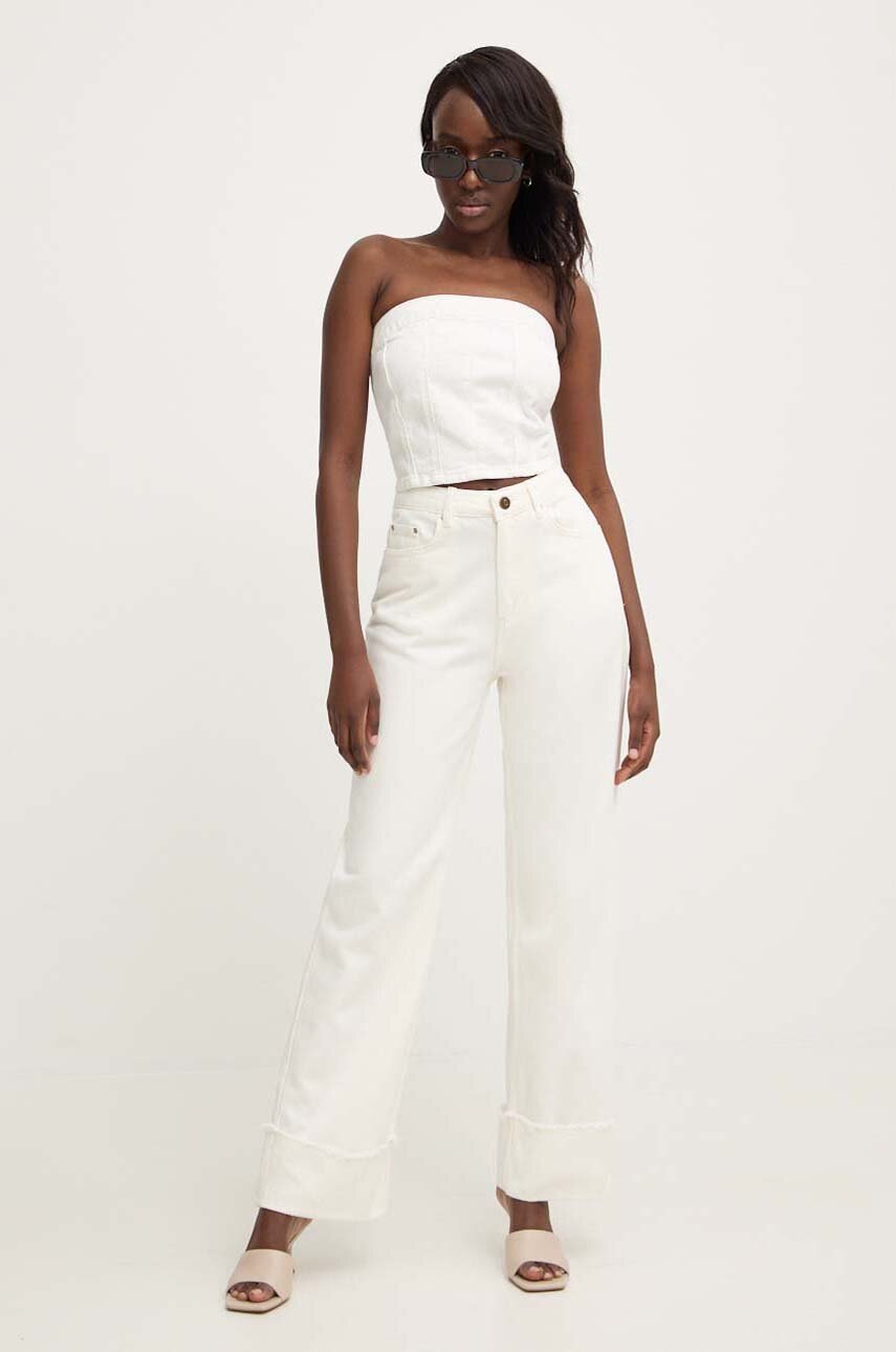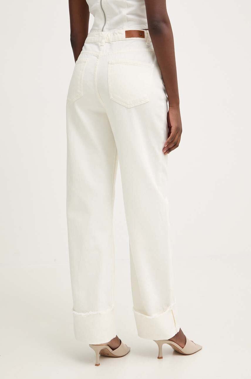 - Model z podwyższoną talią i zapięciem na guzik i suwak.