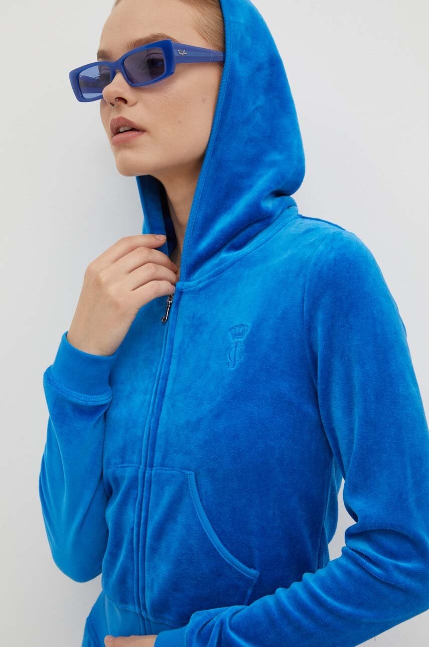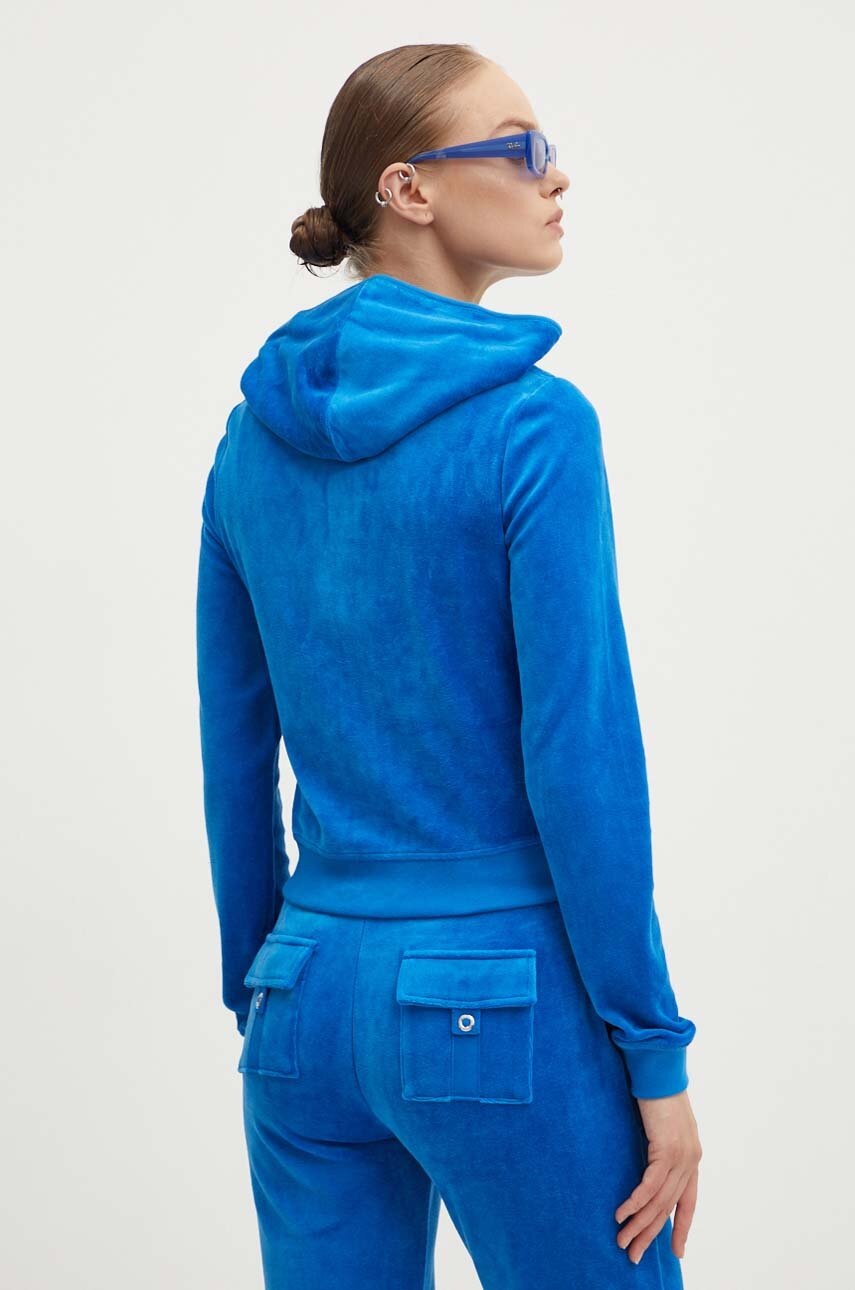 Juicy Couture bluza welurowa HERITAGE ROBYN kolor niebieski z kapturem gładka JCSEBJ007