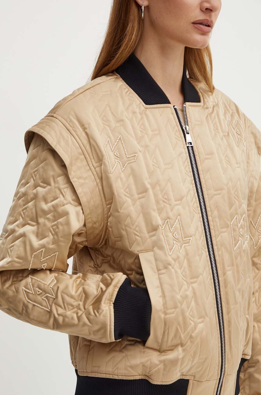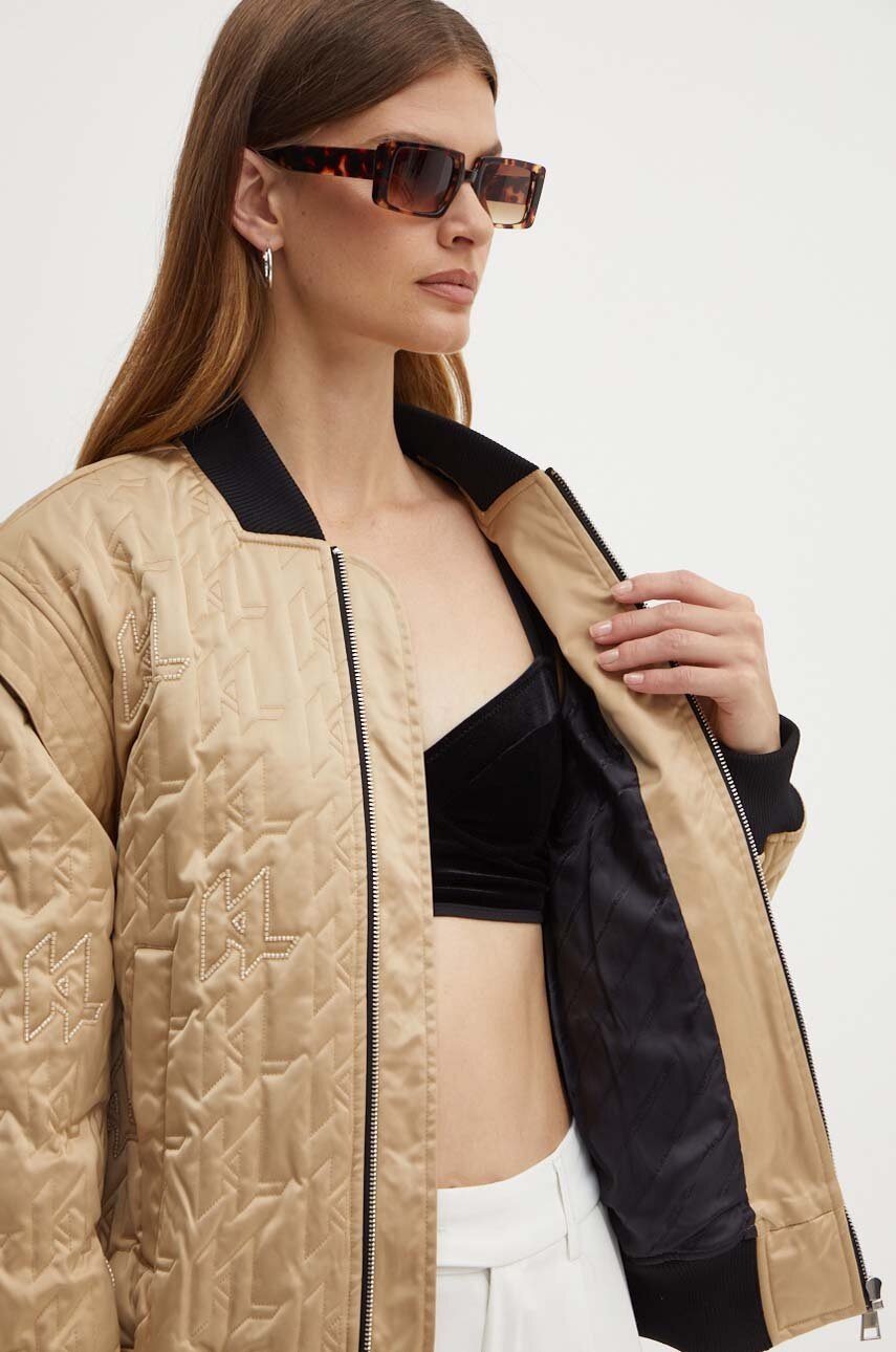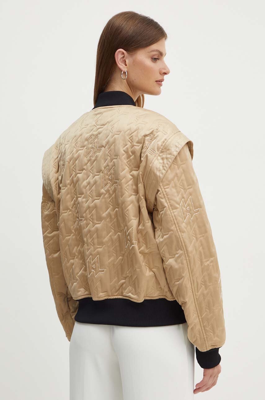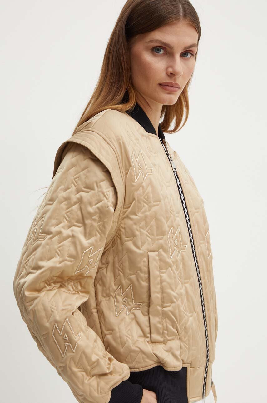 Karl Lagerfeld kurtka bomber damski kolor beżowy przejściowa 245W1506