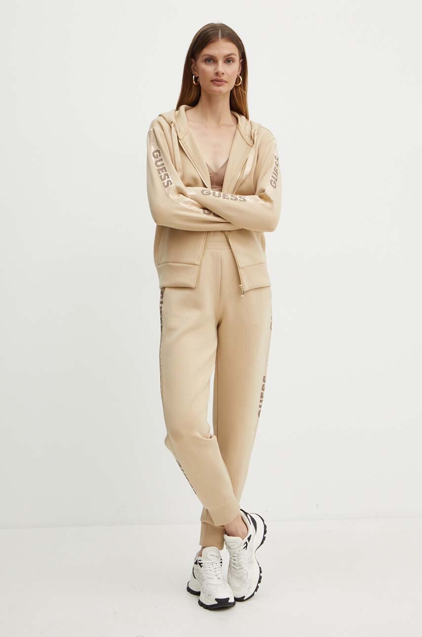 Guess spodnie dresowe kolor beżowy z aplikacją W4YB40 KBYE2