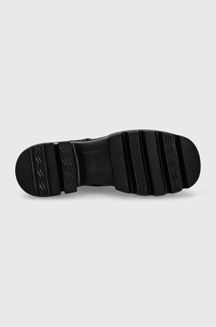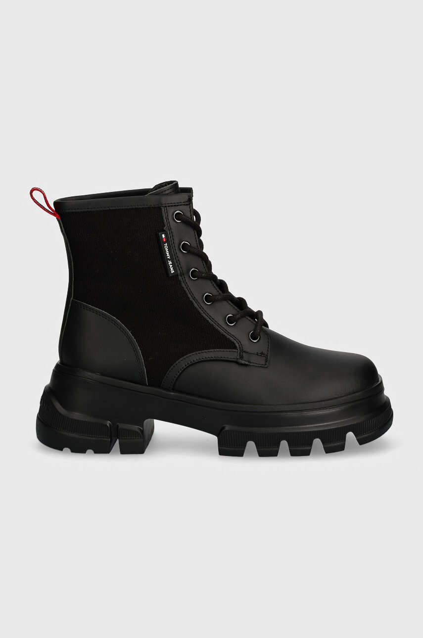 Tommy Jeans botki TJW CHUNKY LACE UP BOOT MIX MAT damskie kolor czarny na platformie EN0EN02554