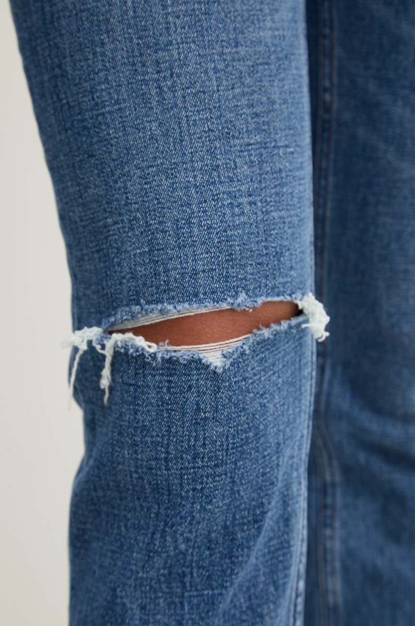 - Fason slim - jeansy o dopasowanym kroju z wąską nogawką, zarówno w okolicach ud, jak i kostki. Podkreślają naturalną linię sylwetki, lecz jej nie opinają - są komfortowe w codziennym użytkowaniu.