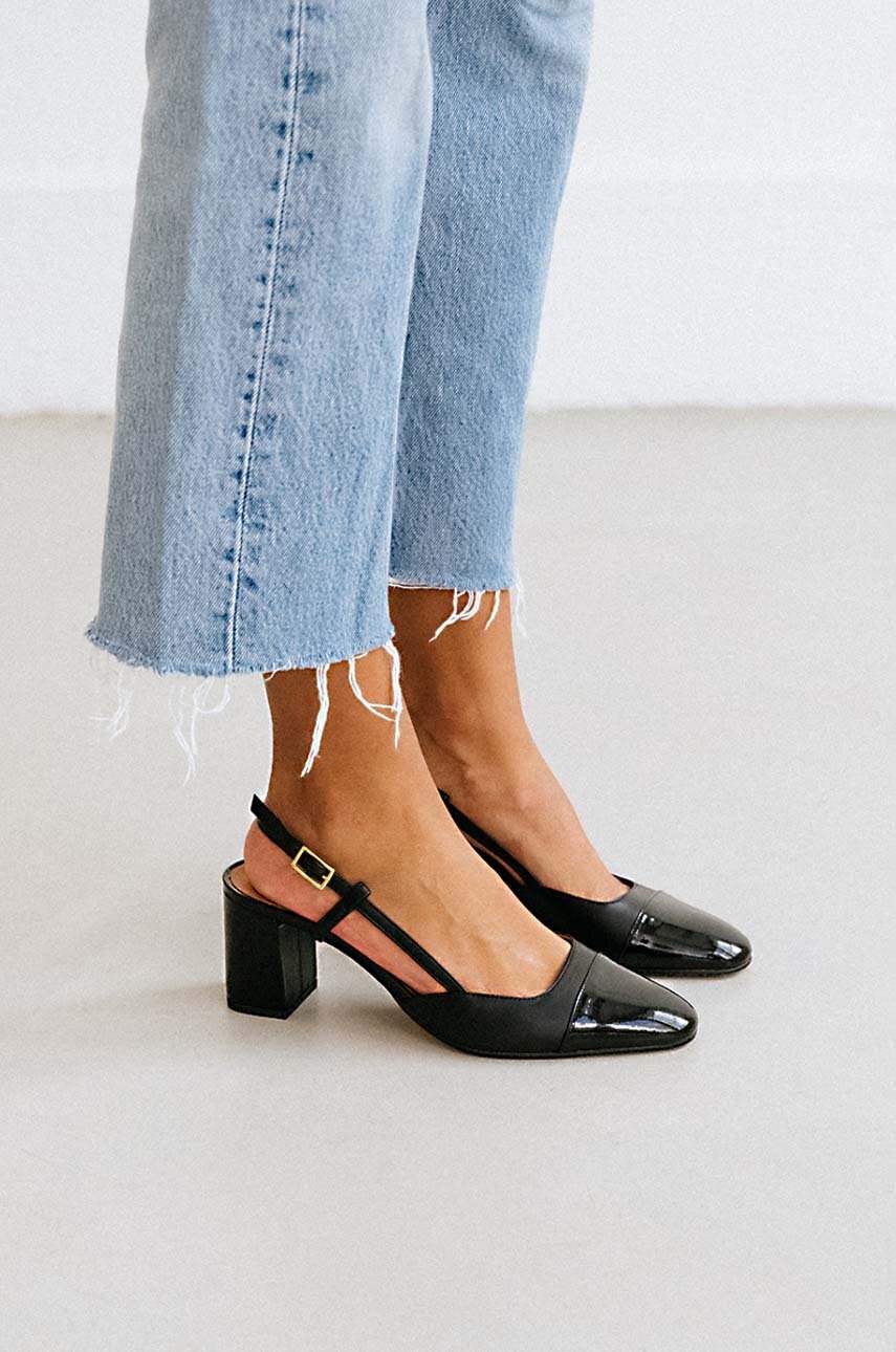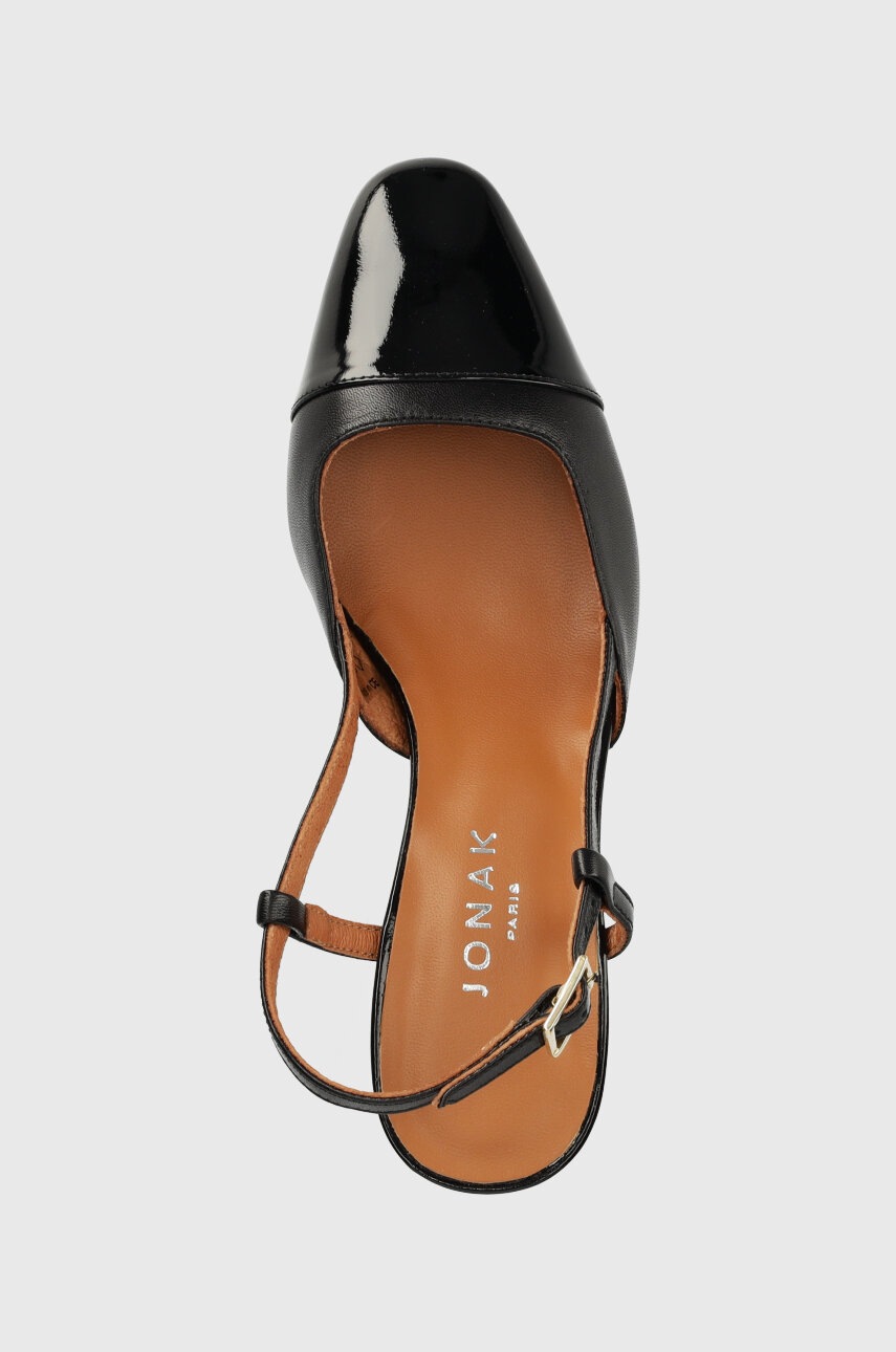 Jonak czółenka skórzane DHAPOP VERNIS/CUIR kolor czarny na słupku z odkrytą piętą 3300259