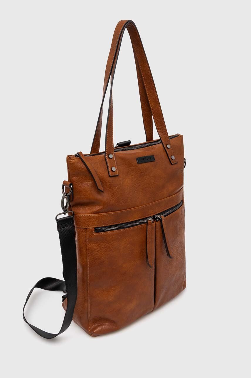 - W zależności od sposobu zapięcia pasków model można nosić na trzy sposoby: w ręku, na ramieniu lub na plecach.
