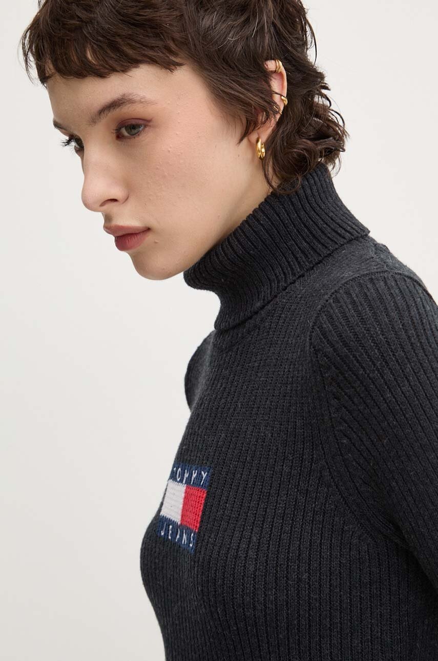 Tommy Jeans sweter z domieszką wełny kolor szary z golfem DW0DW18678