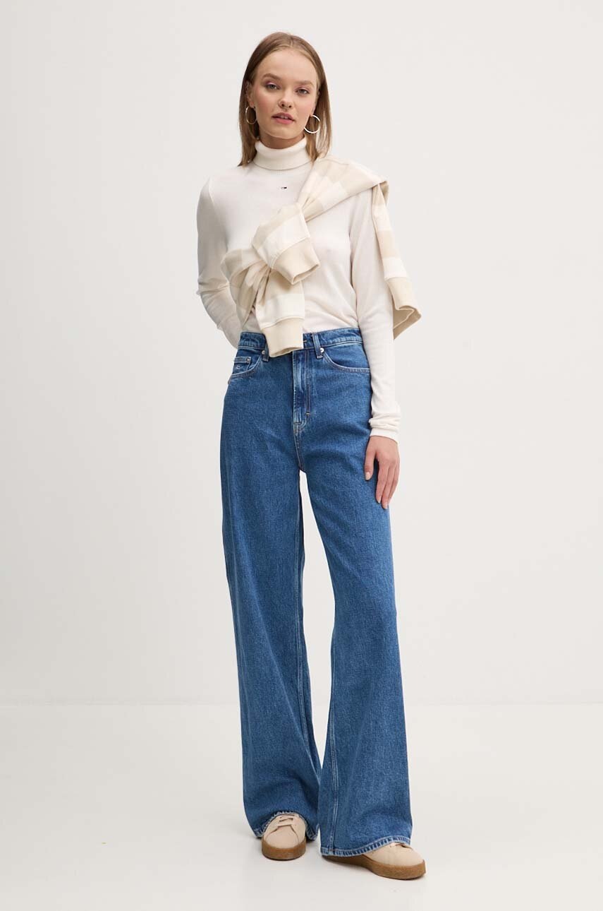 Tommy Jeans sweter damski kolor beżowy z golfem DW0DW19686