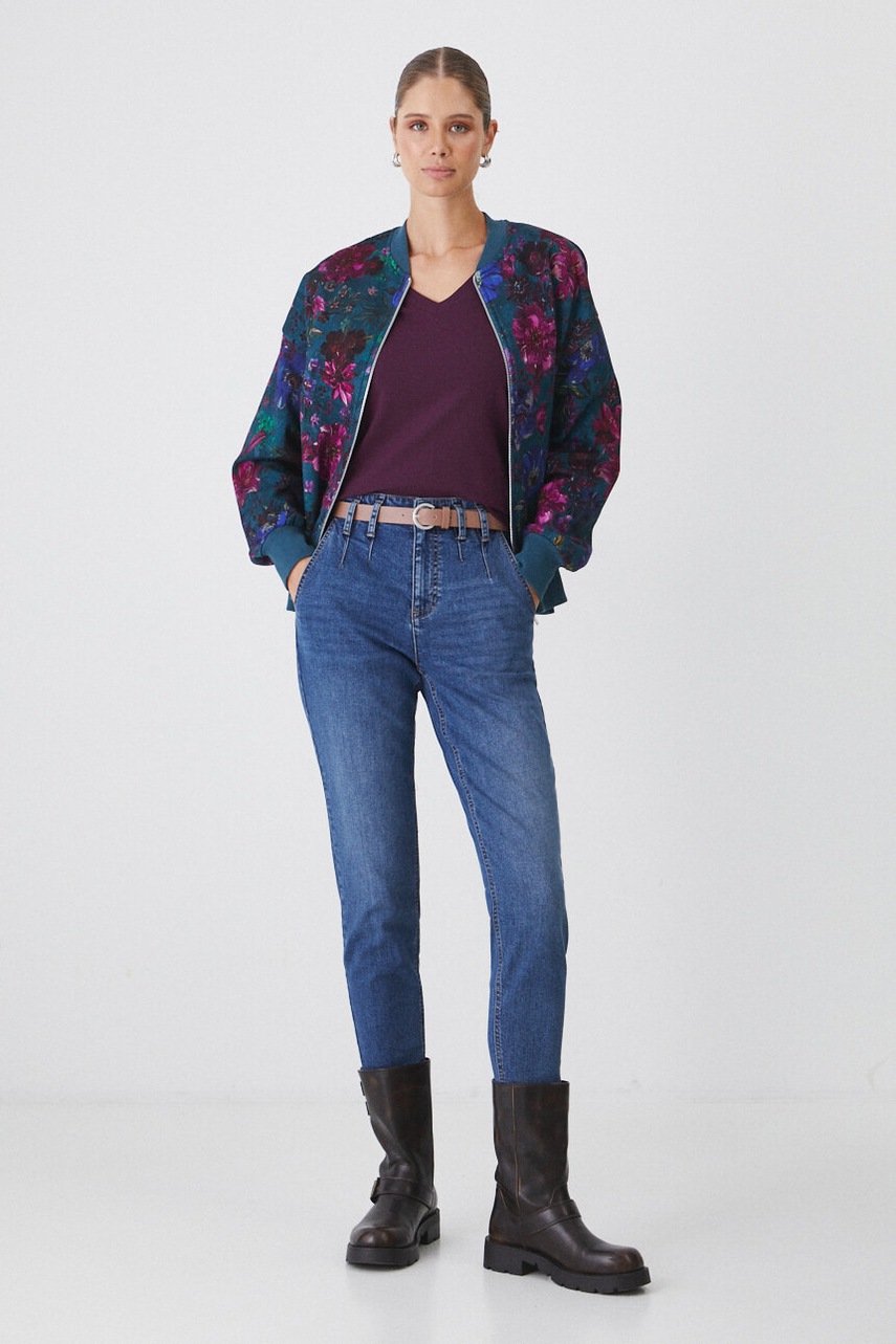 - Fason carrot - jeansy luźniejsze w okolicach bioder, których nogawka lekko zwęża się ku dołowi. Krój ten podkreśla linię talii, optycznie ją wysmukla i pozwala wyrównać proporcje w sylwetce. Idealnie nadają się do stworzenia stylizacji o bardziej formalnym charakterze, przy zachowaniu niezobowiązującego luzu, jaki daje jeans.