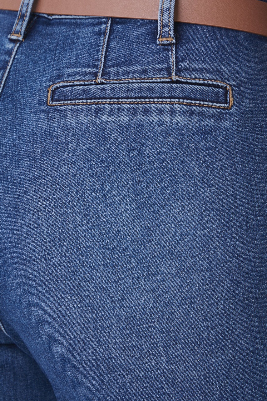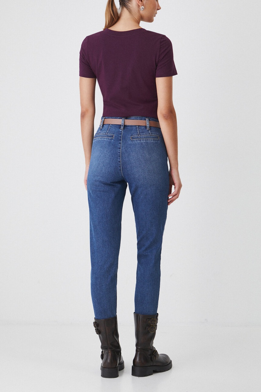 - Model z podwyższoną talią i zapięciem na guzik i suwak.