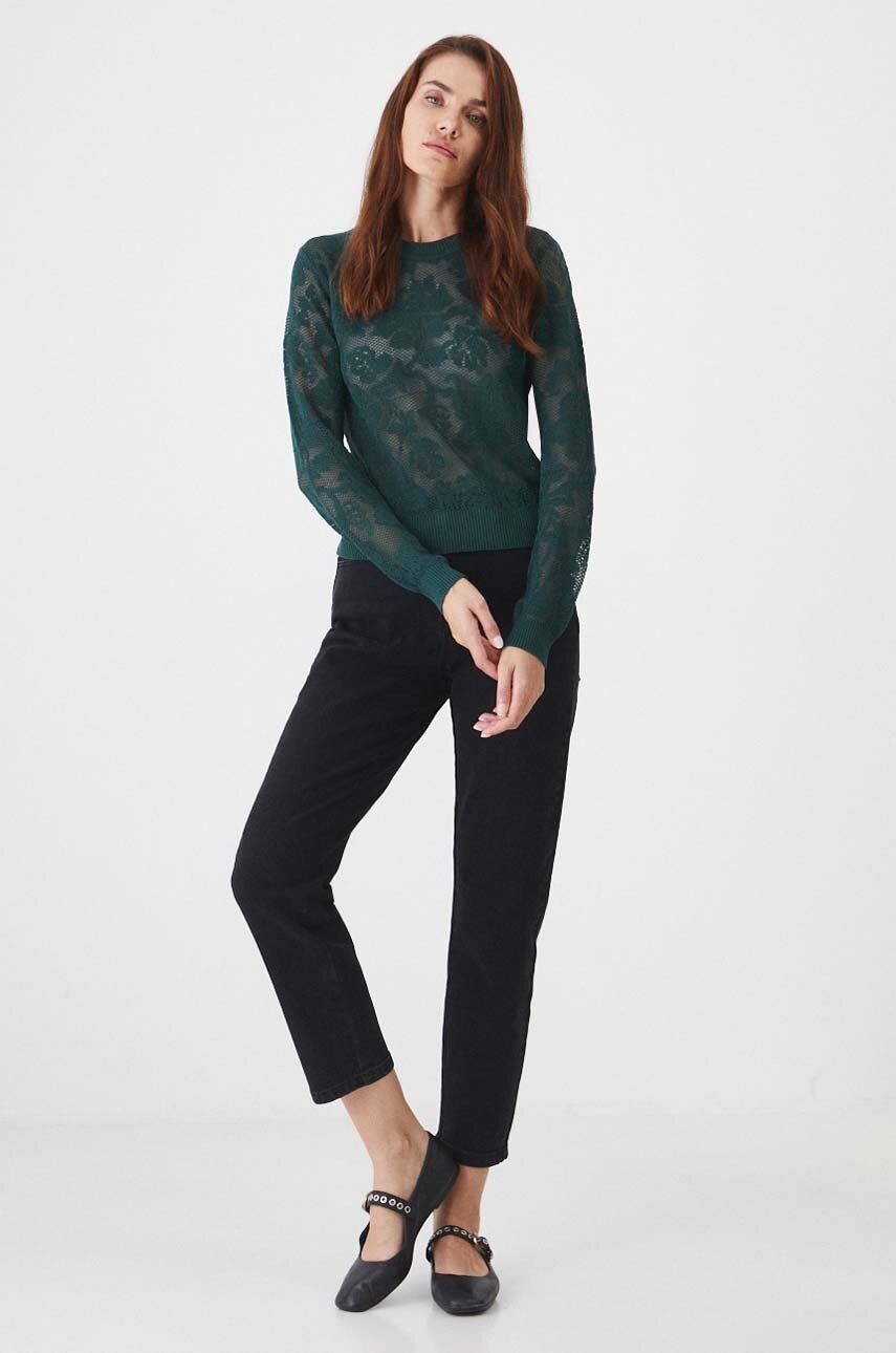 - Fason mom fit - jeansy inspirowane stylem vintage, o luźniejszym kroju, szczególnie w okolicy bioder i delikatnie zwężających się nogawkach. Krój mom fit optycznie zwęża talię oraz podkreśla partię ud, zachowując przy tym komfort noszenia.